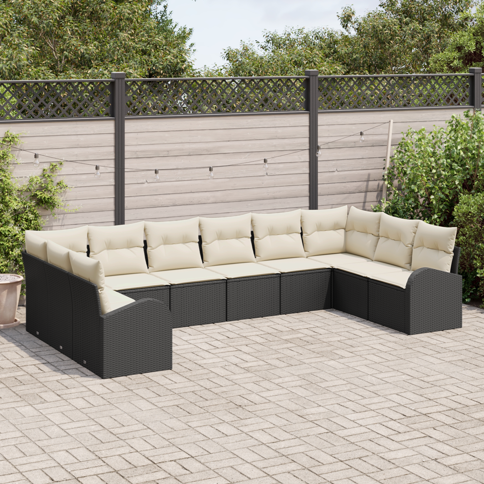 Tento set zahradních pohovek přidává do vašeho venkovního prostoru elegantní a funkční dotek. Moderní design spojuje jednoduchost s variabilitou, takže nabízí pohodlné sezení i zážitek z odpočinku. Tkaná struktura poly ratanového materiálu zajišťuje silnou odolnost a tento kvalitní nábytek zvládne i drsné počasí, stává se středobodem vašich grillek nebo klidných chvil.