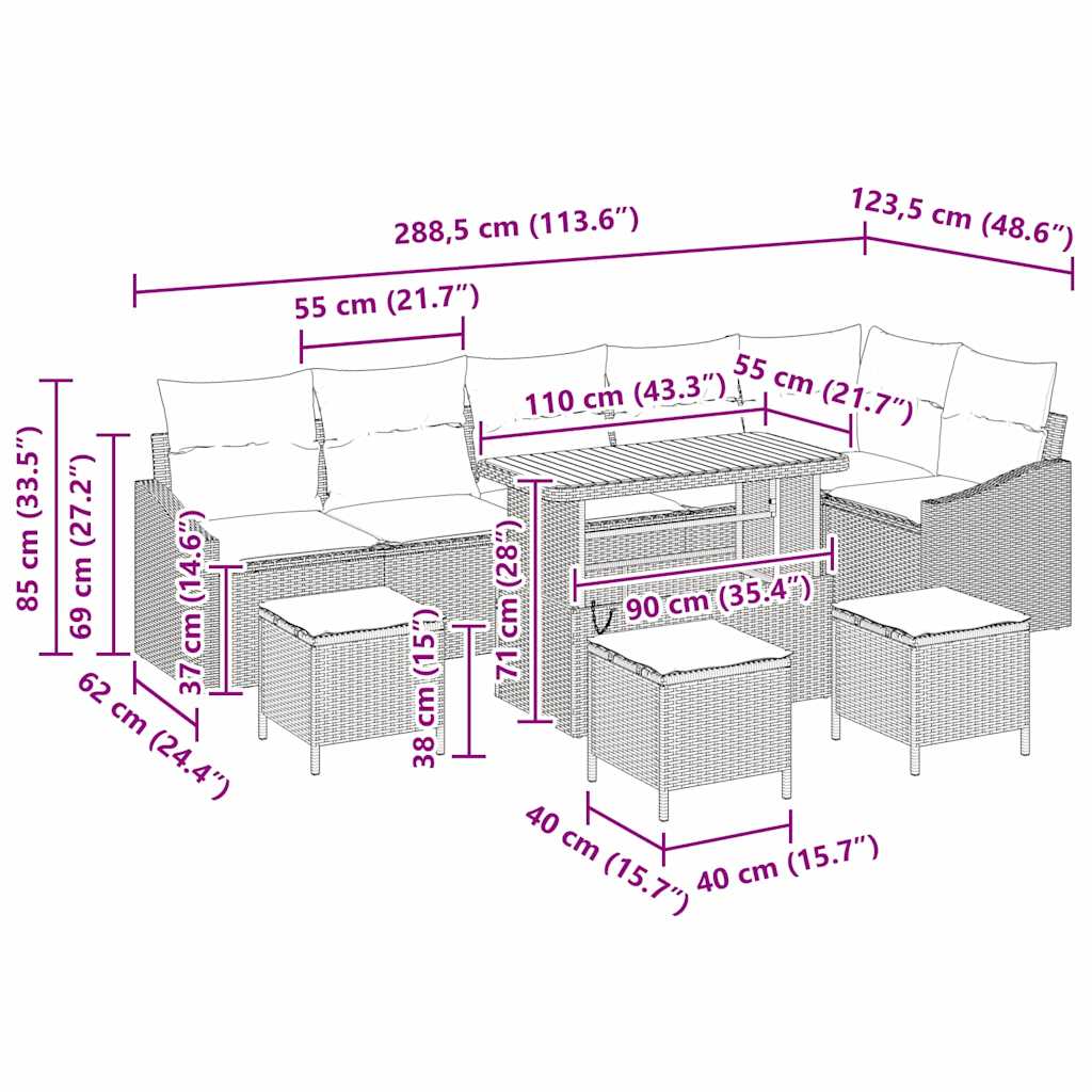 Tato moderní zahradní pohovková souprava přináší do vašich venkovních prostor styl a funkčnost, reflektující soudobý design s čistými liniemi a modulárním uspořádáním. Skvělá na zahrady a terasy, souprava se pyšní unikátní směsí materiálů, mezi které patří polyratan a ocel, což jí dodává elegantní a moderní vzhled. Je universální a snadno se hodí do jakékoli venkovní scény, zároveň nabízí pohodlí a možnost dlouhodobého užívání pro lenošení, shromáždění nebo prostě si umět vychutnat slunný den.