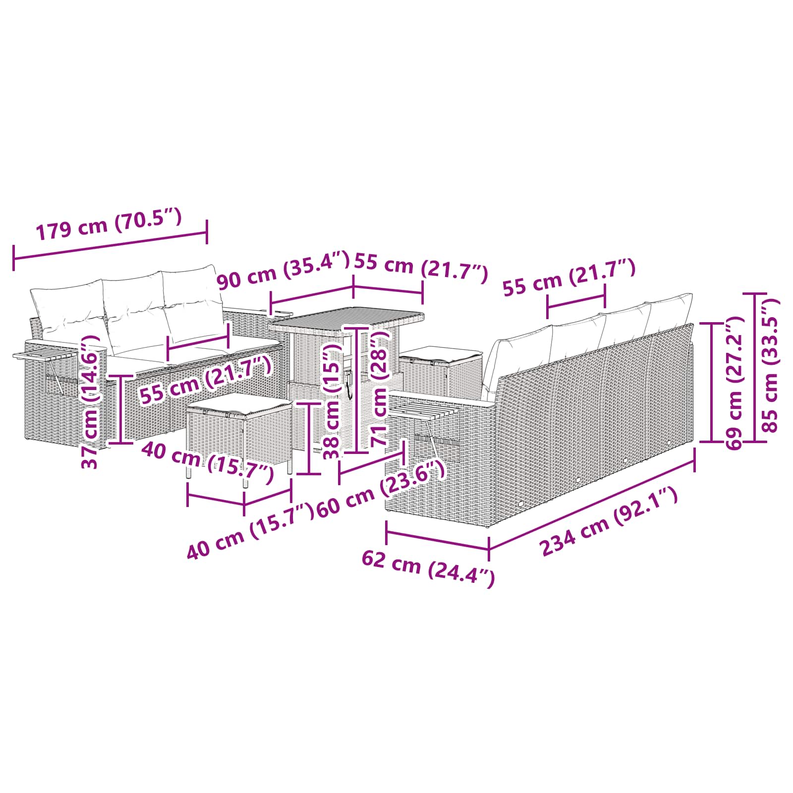 Tato modulární zahradní pohovková souprava je stvořená pro pohodlí venku a přizpůsobivost. Spojuje moderní vzhled s užitečností. Má elegantní design se svěžími liniemi a minimem zdobení, ideální pro vaši zahradu nebo terasu. Díky modulárnímu setu si můžete sezení uspořádat, jak potřebujete. Poly ratan a akáciové dřevo nabízejí jak hezký vzhled, tak odolnost, takže je ideální pro jarní a letní akce.