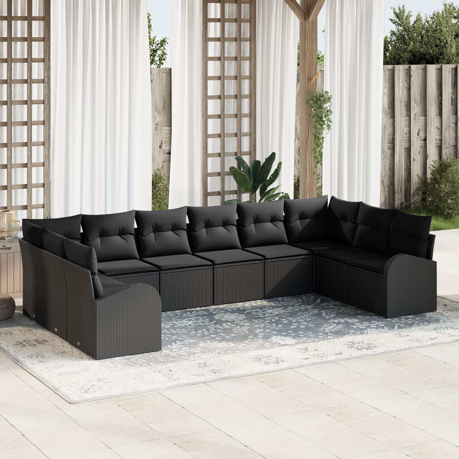 Tento set zahradních pohovek přidává do vašeho venkovního prostoru elegantní a funkční dotek. Moderní design spojuje jednoduchost s variabilitou, takže nabízí pohodlné sezení i zážitek z odpočinku. Tkaná struktura poly ratanového materiálu zajišťuje silnou odolnost a tento kvalitní nábytek zvládne i drsné počasí, stává se středobodem vašich grillek nebo klidných chvil.