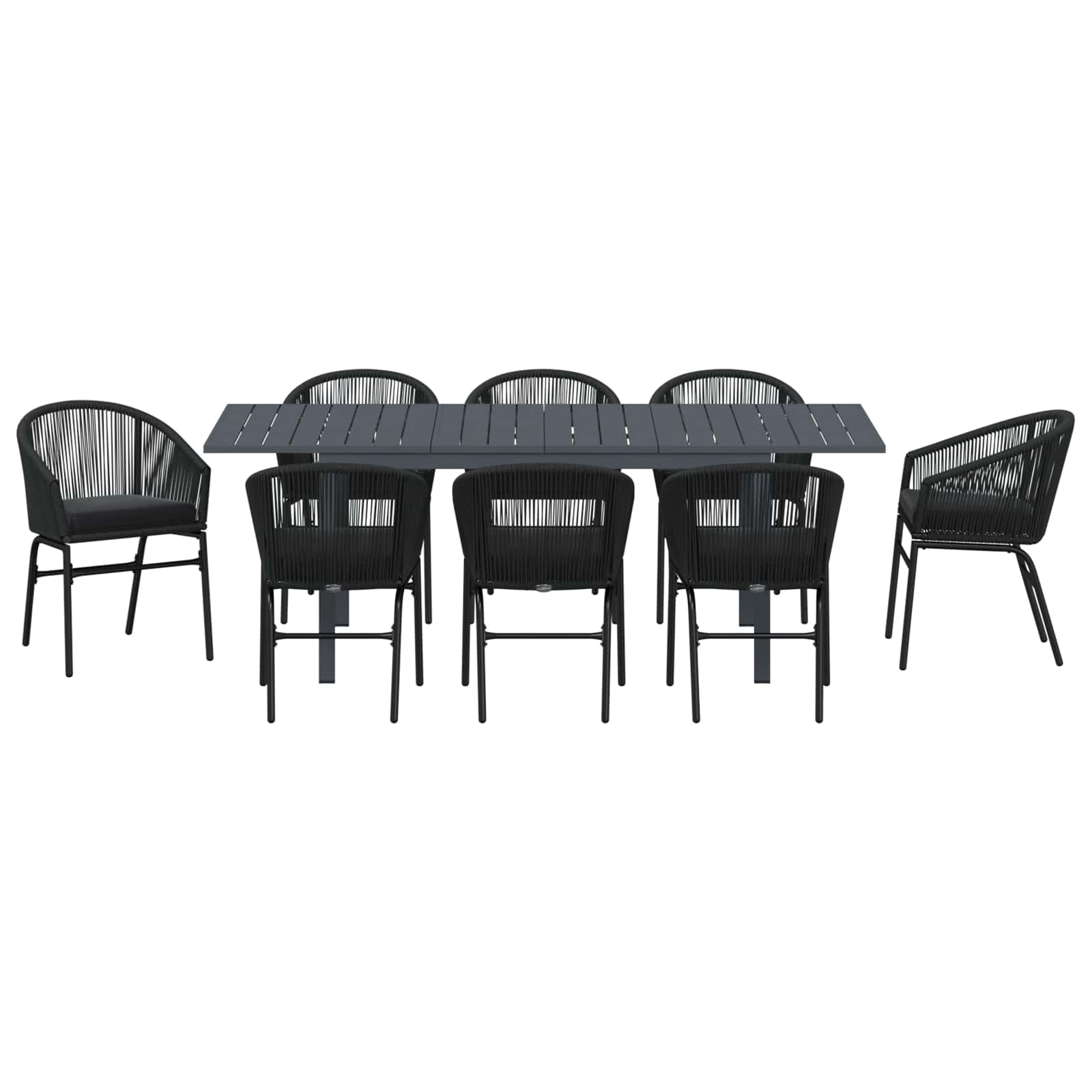 Tento moderní jídelní set nabízí dokonalý mix stylu a pohodlí pro venkovní akce, ať už malé rodinné sešlosti nebo větší oslavy. S čistým designem se hodí jako středobod jakékoliv zahrady či terasy, přidává šarm a útulnost, ideální pro vytvoření příjemné atmosféry.