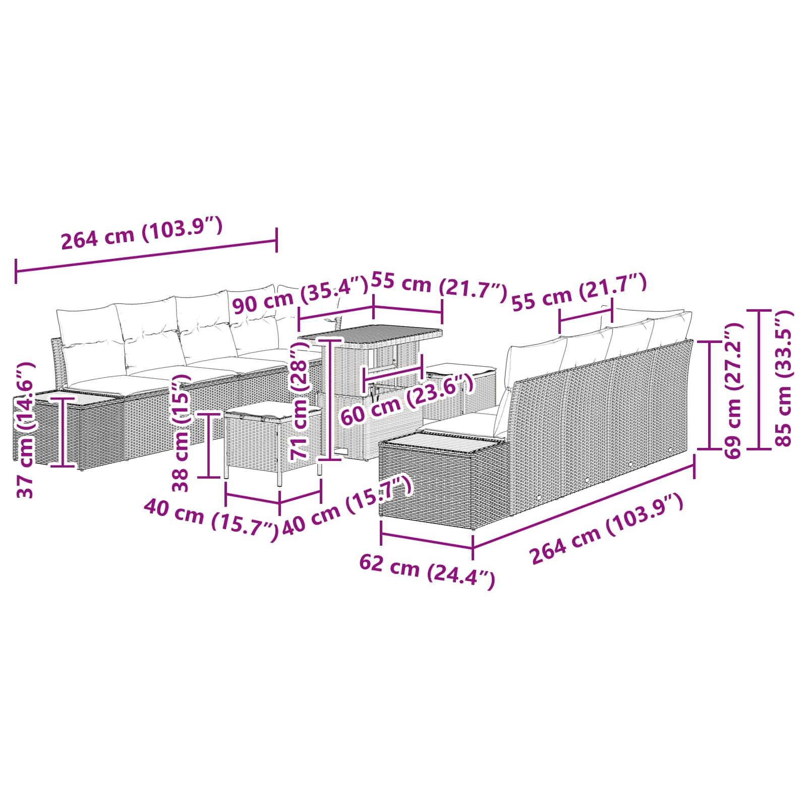 Sada zahradních pohovek s polštářem 11 pcs Černá Poly ratan