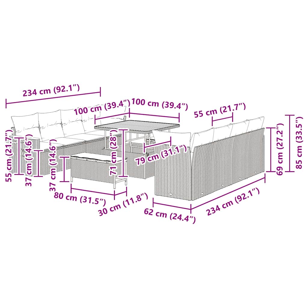 Garden Lounge Set s polštáři je výborný doplněk pro každý venkovní prostor, přinášející moderní a sofistikovaný dotek, který se hodí do různých zahradních uspořádání. Jeho elegantní povrch a jednoduchý design zajišťují, že zapadne do každého prostředí a poskytne klidné útočiště. Navrženo pro ty, co chtějí vylepšit svůj venkovní obývací prostor, toto set je skvělý pro relaxaci, rodinné akce nebo pohodové odpoledne.