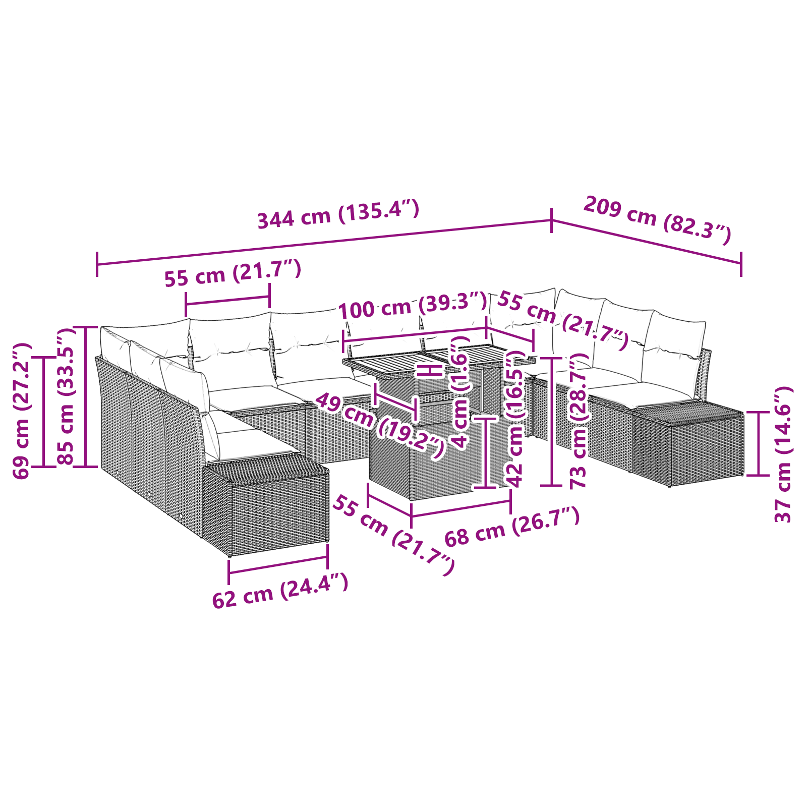 Sada zahradních pohovek s polštářem 11 pcs Béžová a krémová