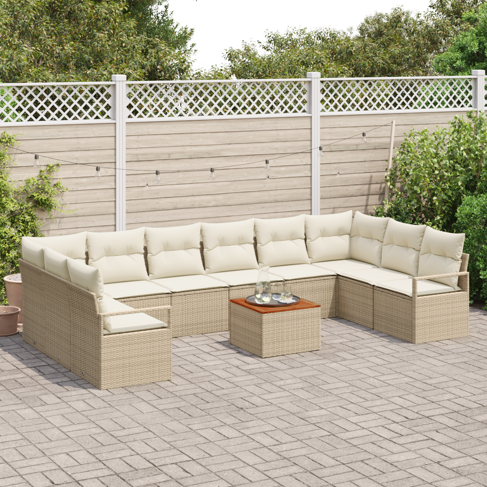 Sada zahradních pohovek s polštářem 11 pcs Béžová Poly ratan