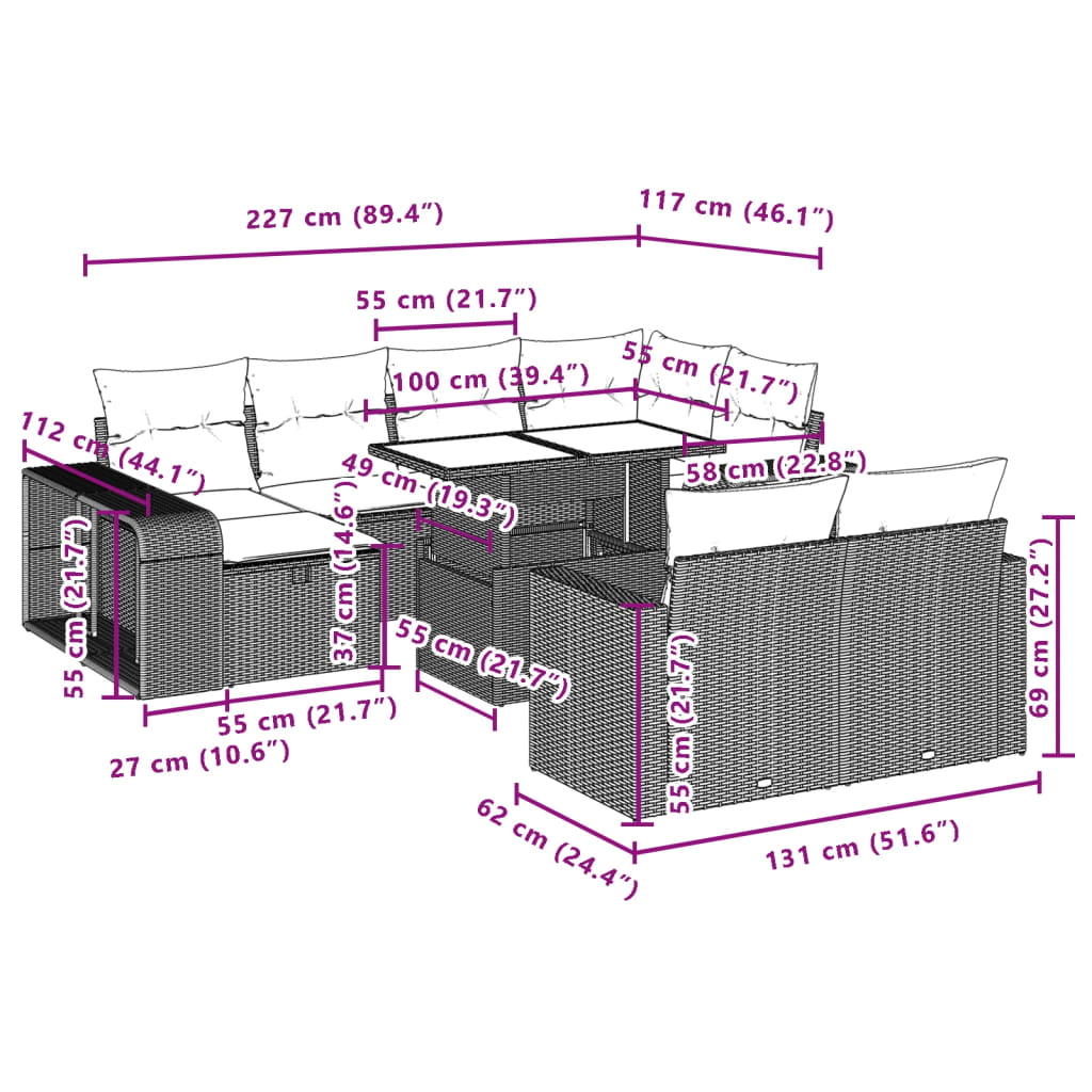 Tato zahradní sedací souprava je dokonalým doplňkem vaší zahrady, terasy nebo dvorku a poskytne vám pohodlné a příjemné místo, kde si můžete povídat s rodinou a přáteli nebo jen tak odpočívat a užívat si pobyt venku.