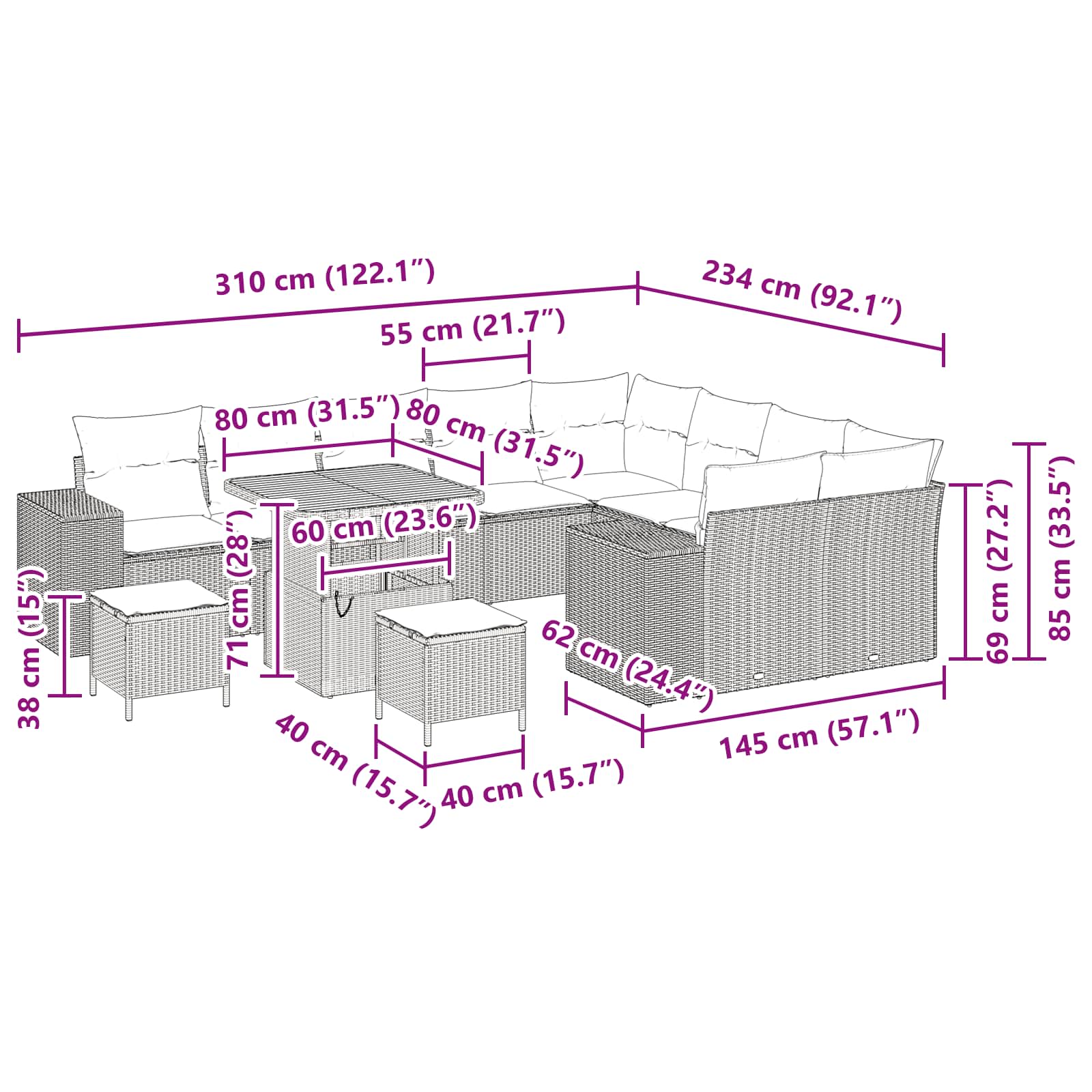 Sada zahradních pohovek s polštářem s úložištěm 12 pcs Černá
