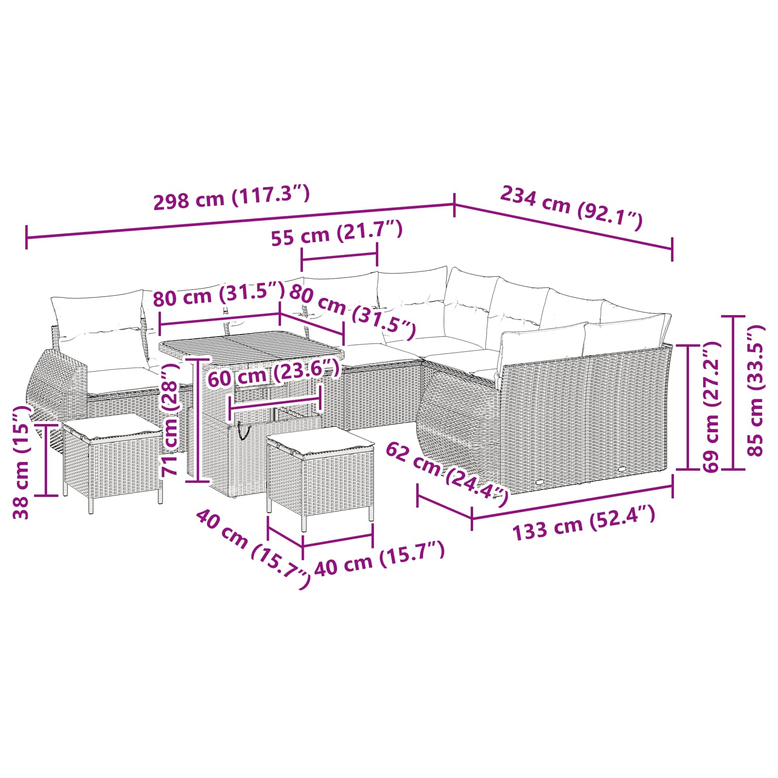 Tato zahradní pohovka je moderním kouskem pro váš venkovní prostor. Má modulární design, který se hodí do každé zahrady nebo na terasu. Její jednoduchost a funkčnost se ukazuje v čistých liniích a minimálních ozdobách, což vytváří příjemné místo na odpočinek nebo posezení s přáteli. Textura a linie dodávají moderní nádech, který zvyšuje estetiku jakéhokoli venkovního prostředí.
