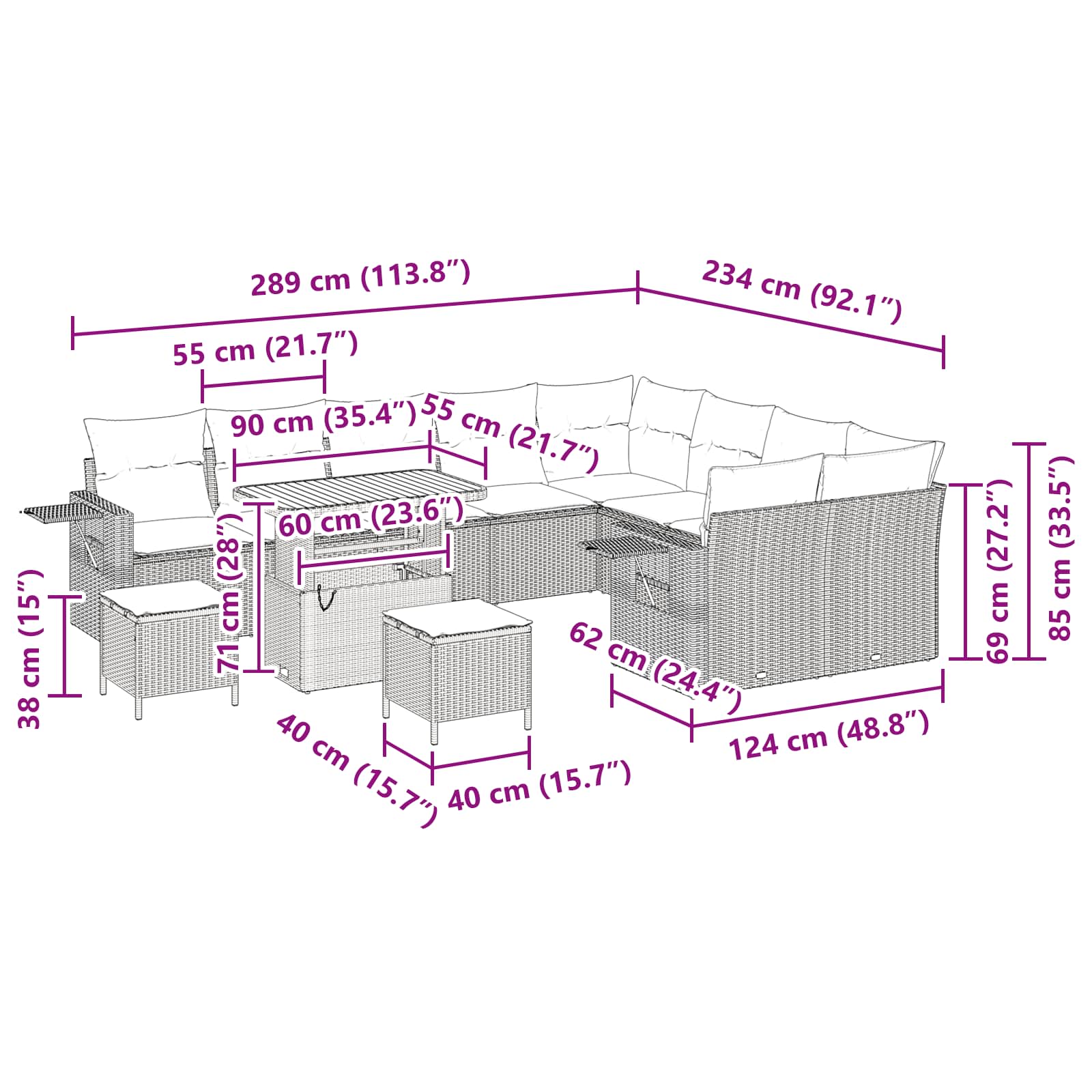 Tato zahradní pohovka nádherně spojuje funkčnost s moderním stylem, což z ní dělá skvělý doplněk pro jakoukoliv venkovní plochu. Díky elegantním liniím a praktickému designu je ideální pro příjemné jarní a letní dny strávené venku. Představ si bezstarostné odpoledne se spoustou prostoru sezení, které tento set nabízí, užívej si ho s přáteli a rodinou. Každý detail je navržen tak, aby kombinoval vizuální eleganci a pohodlí, takže se skvěle hodí do jakékoli zahrady nebo terasy.