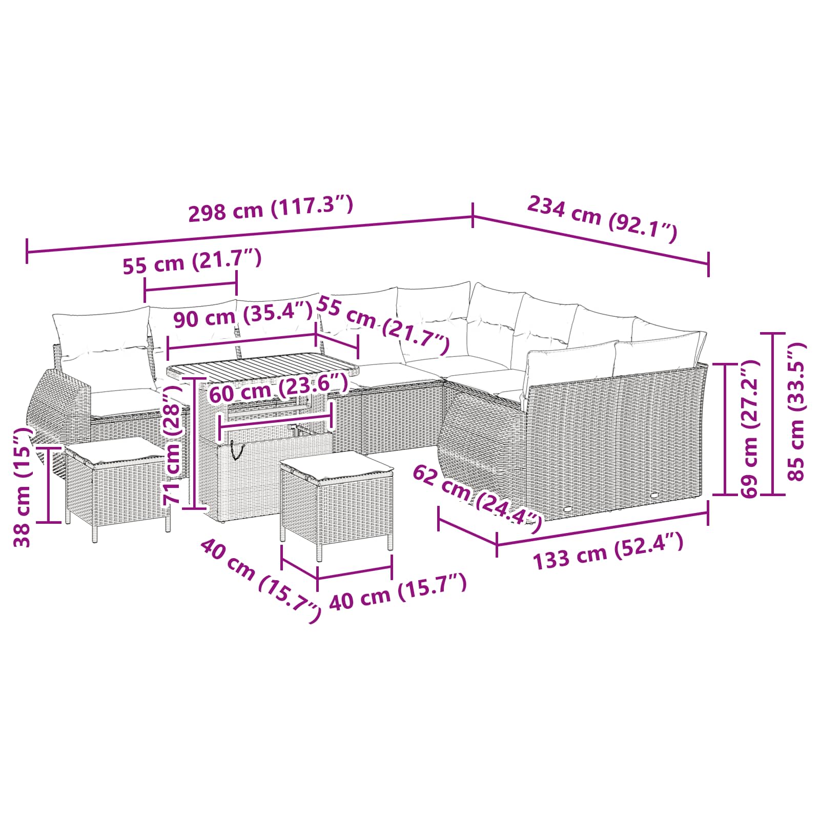 Tato zahradní pohovka nabízí moderní venkovní útočiště, které spojuje jednoduchost s funkčností. Je ideální pro terasy a zahrady, které chtějí klidné místo na odpočinek. Kombinace poly ratanu a elegantních nožek dělá z této pohovky skvělý kousek pro jakékoli venkovní prostředí. Navržena pro relaxaci, tato sada zve k příjemným setkáním během teplých měsíců a vyniká všemi detaily, od pohodlných sedadel po zajímavé textury.