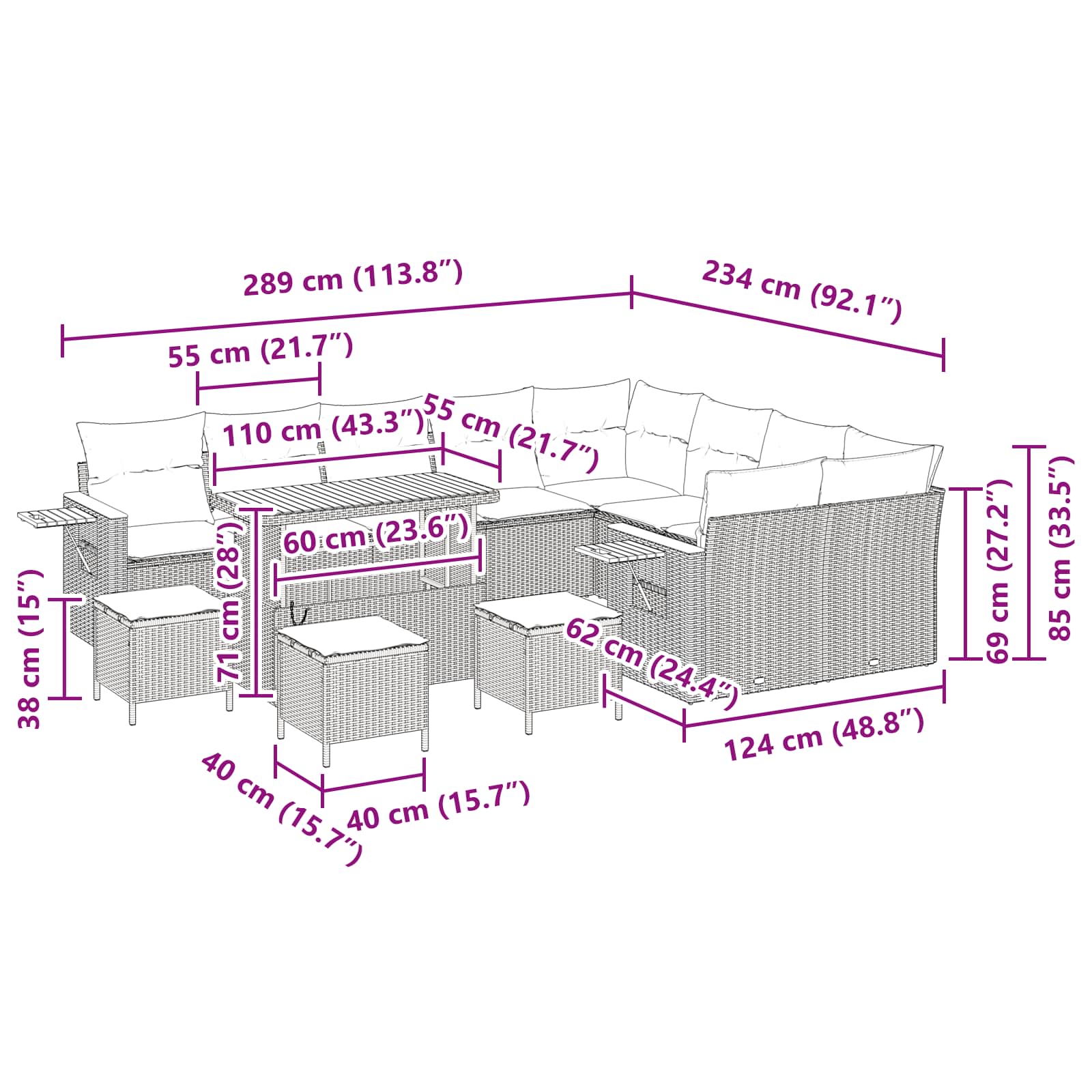 Tento modulární zahradní pohovkový set přináší moderní eleganci, ideální pro venkovní prostory jako jsou zahrady a terasy. S čistými liniemi a minimalistickým stylem zve k relaxaci pod sluncem – skvělé na pohodové večery nebo osamělý klid. Jeho flexibilní design vám umožňuje uspořádat ho dle potřeby, takže je super pro neplánované garden party nebo klidné chvíle.