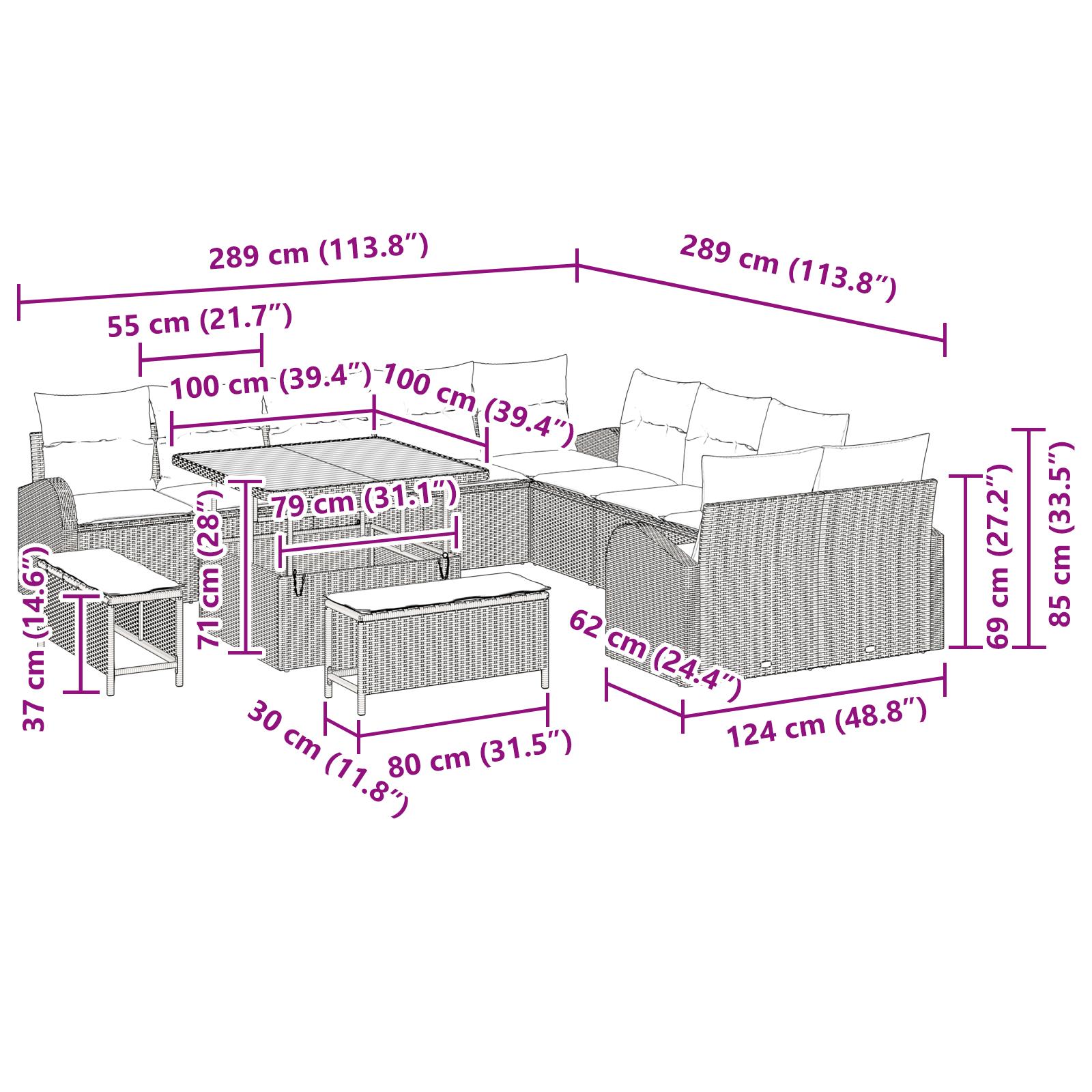 • Funkce / Design: Tato souprava je připravena překonat povětrnostní podmínky a vydrží dešťové i slunečné dny. Výškově nastavitelný stůl se snadno mění mezi kávovým stolem a jídelní plochou, což usnadňuje uspořádání venkovních prostor. Díky modulárnímu designu si můžete přizpůsobit svoje venkovní uspořádání podle vlastního vkusu. Perfektní pro stylové a moderní prostory!