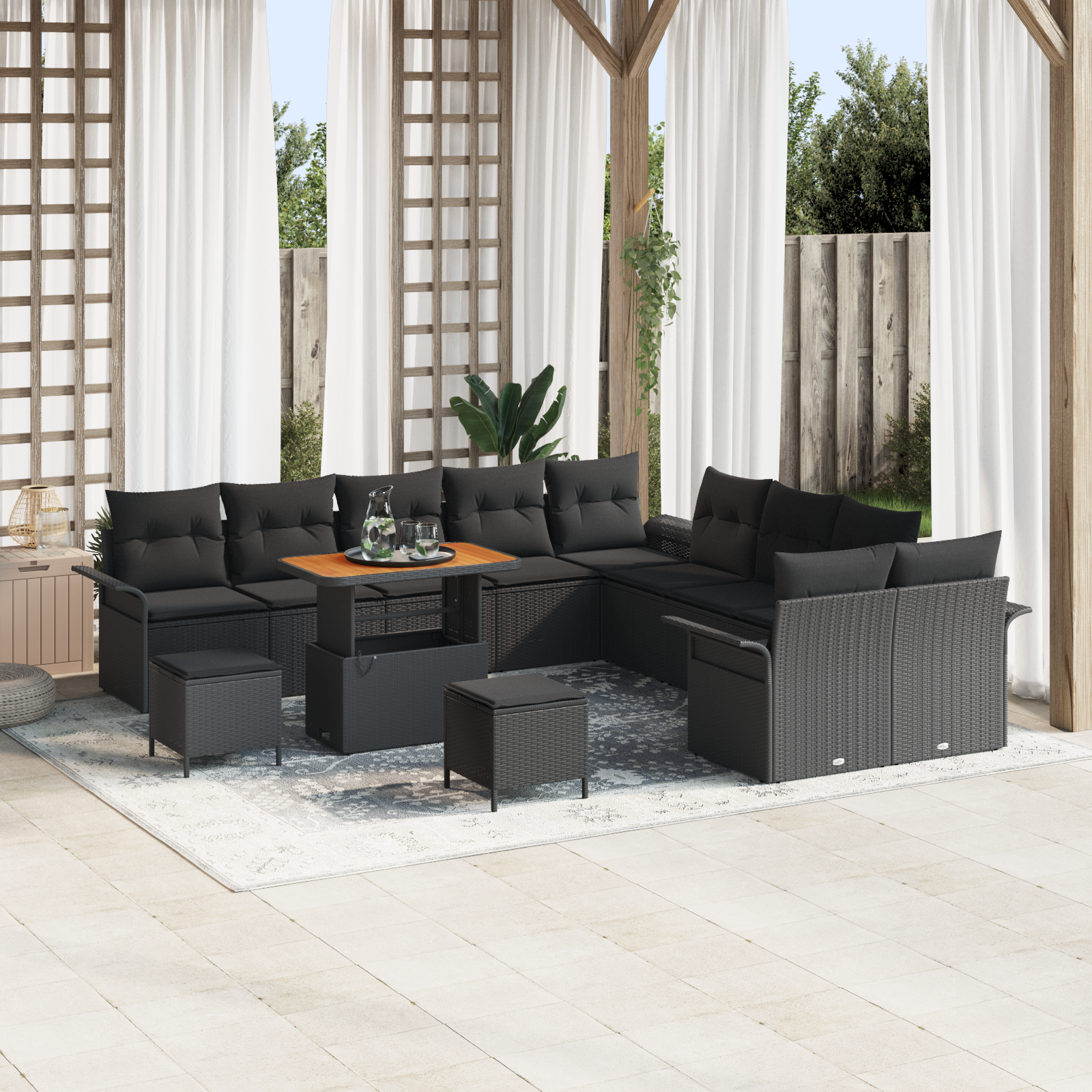 Sada zahradních pohovek s polštářem s úložištěm 13 pcs Černá