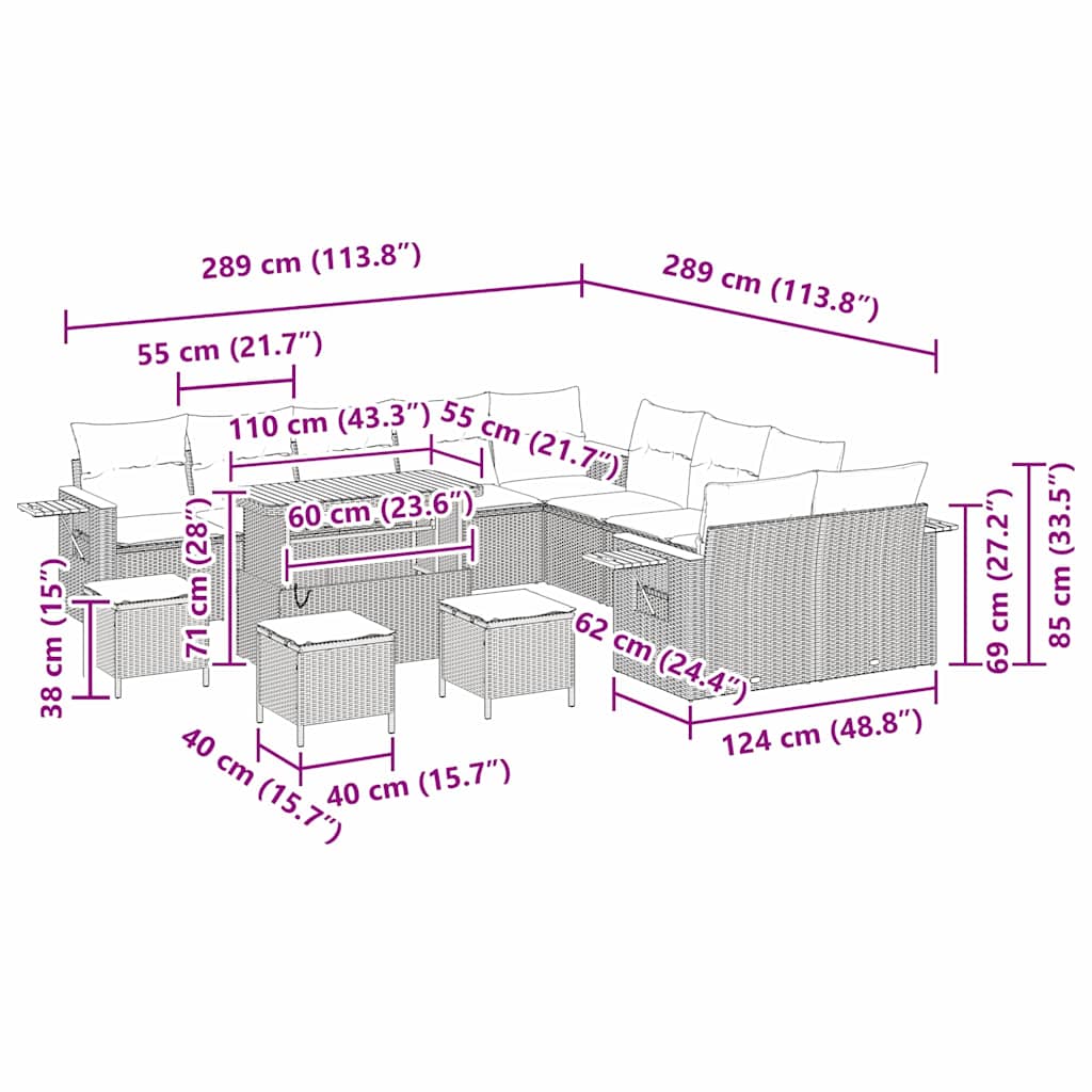 Sada zahradních pohovek s polštářem 14 pcs Černá a krémová