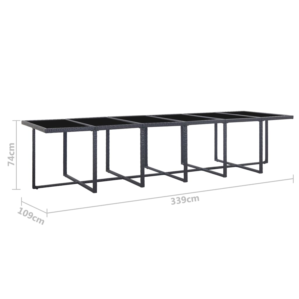 Ocelové rámy zajišťují pevnost celé sestavy, zatímco PE ratan, který skvěle odolává vodě i rozmarům počasí, usnadňuje její čištění. Lehká konstrukce umožňuje bez námahy přesouvat všechny díly sedací soupravy. Silné snímatelné podušky na sedáky a opěradla jsou ušité z vodoodpudivého polyesteru a zaručeně vám poskytnou maximální pohodlí. Praktické stoličky lze zasunout pod židle a židle se stoličkami zase pod stůl, takže pokud je právě nepoužíváte, ušetříte spoustu místa!