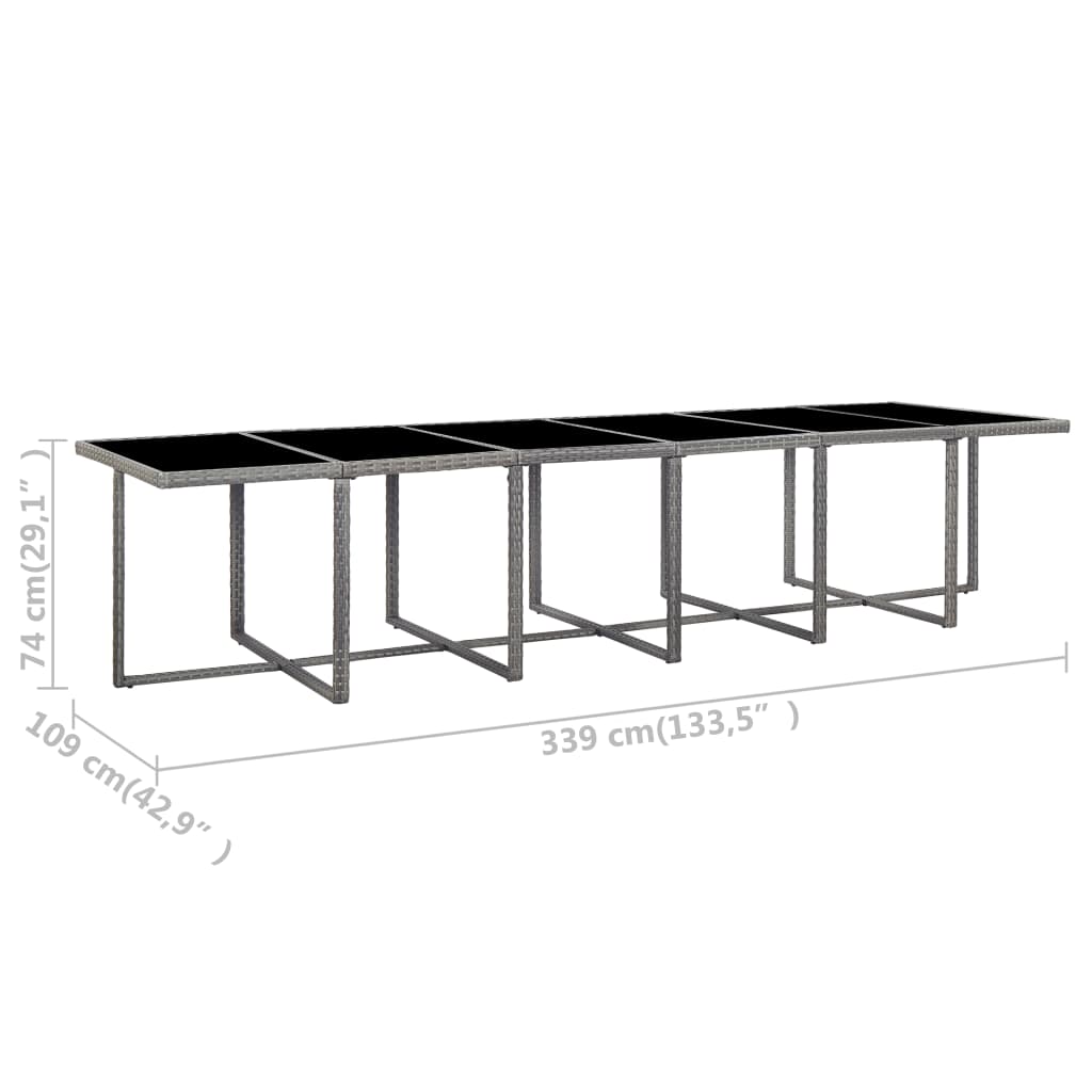 Balení obsahuje 1 stůl se skleněnou horní deskou, 12 ratanových židlí, 4 stoličky a 28 odnímatelných podušek.