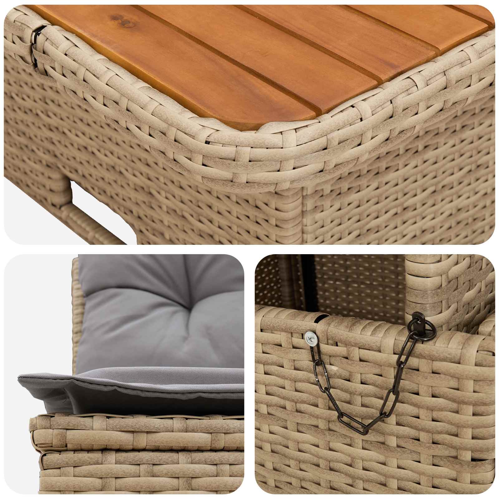 Tato středová pohovka do zahrady s zvedacím stolem nabízí příjemné sezení a pohodlný povrch pro každodenní použití. Stolek se dá zvednout na odkládání nápojů nebo drobností. Vyrobená z polyratanu a pevného rámu, je ideální na venkovní použití.