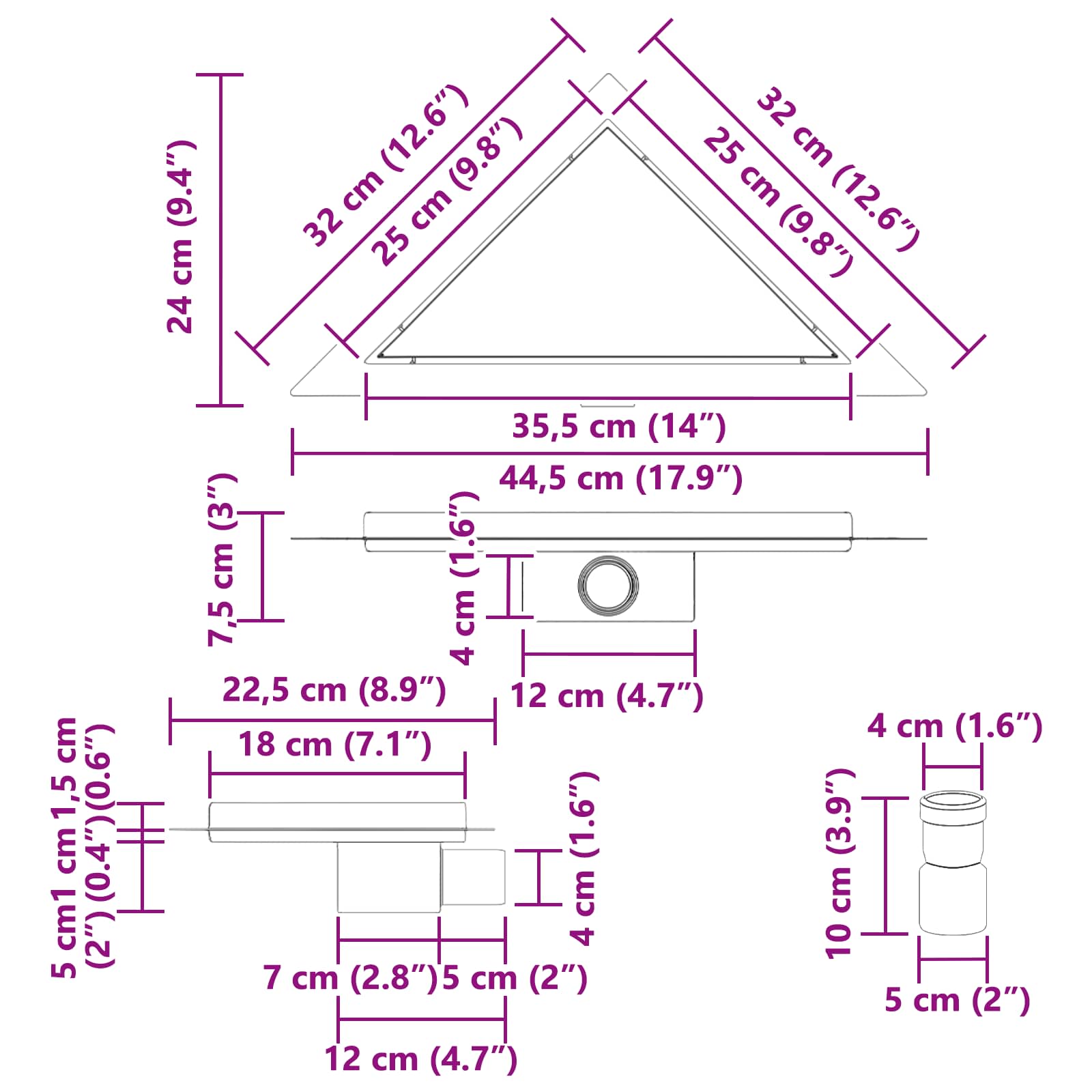 Tenhle inovativní sprchový odtok 2 v 1 mixuje moderní vzhled a funkční eleganci pro stylové koupelny. Jeho trojúhelníkový tvar perfektně zapadne do rohů sprchy a skvěle vypadá. Odtok je navržen pro ty, kdo mají rádi minimalistický styl, ale chtějí, aby měl dostatečný efekt. Tento odtok dodá tvojí koupelně elegantní vzhled a skvěle ladí s jakýmikoli dekoracemi.