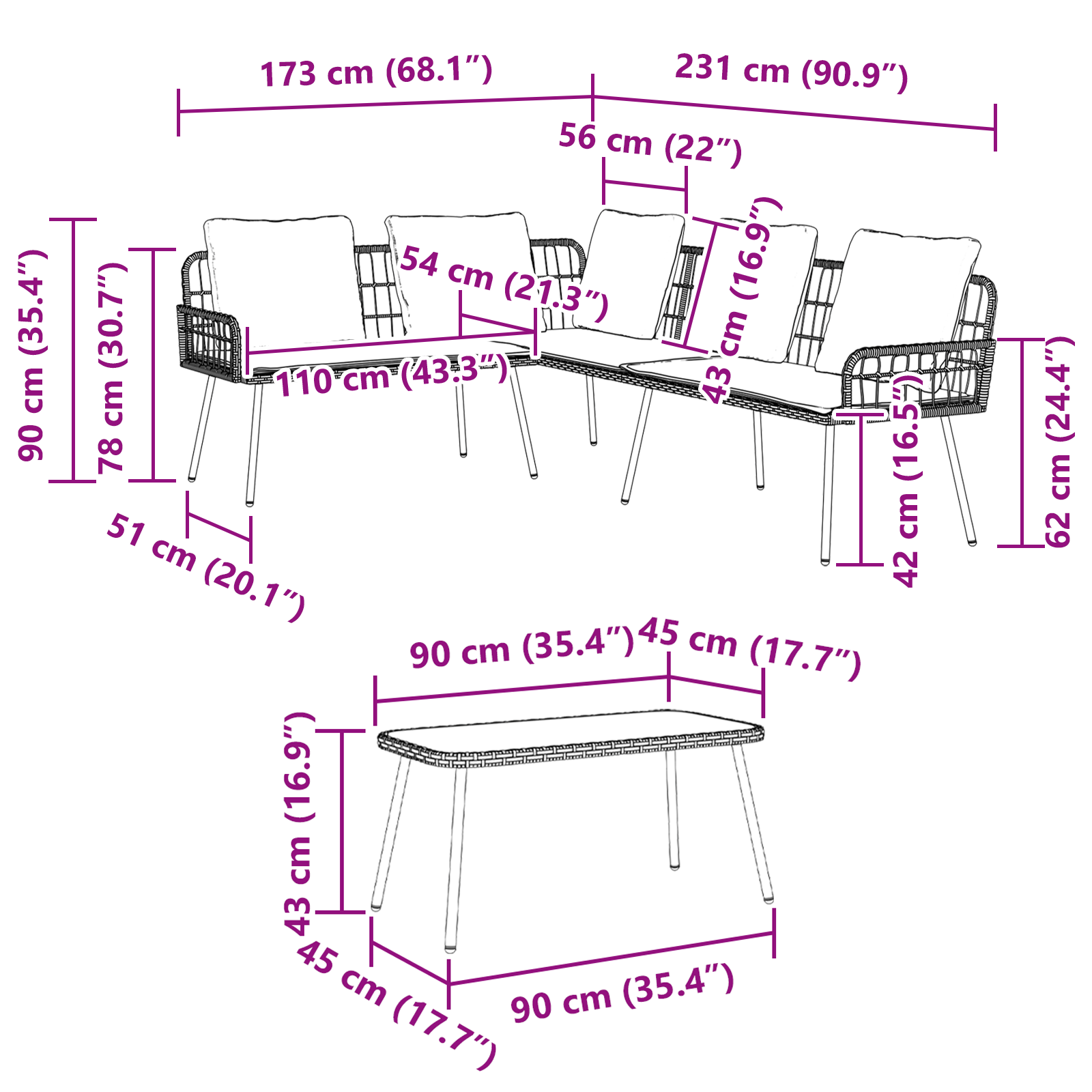Tento zahradní pohovkový set spojuje moderní nábytek s pohodlím. Skvěle doplní vaši zahradu nebo terasu, přináší elegantní styl a praktické řešení. Jeho jednoduchý design je ideální pro ty, kteří ocení moderní eleganci a funkčnost. Perfektní pro menší setkání nebo relaxaci, nabízí super kombinaci krásy a pohodlí. Ať už zvete přátele nebo si užíváte poklidné odpoledne, jeho vzhled příjemně doplní každé prostředí a vytvoří přátelskouv atmosféru.