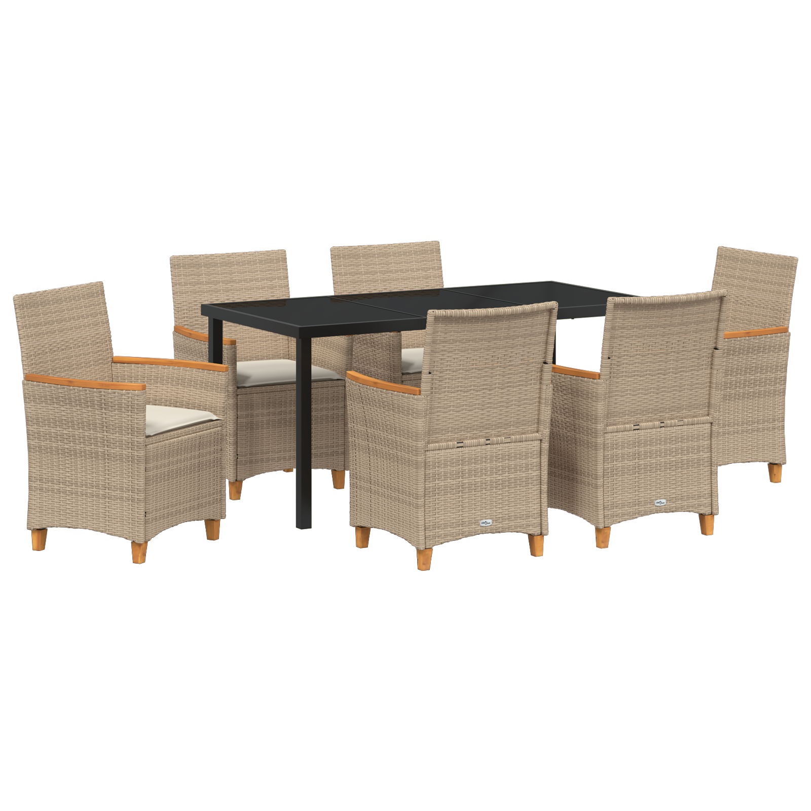Tento zahradní jídelní set přetvoří jakýkoli venkovní prostor na moderní a funkční jídelnu. Elegantní přímé linie a minimalistický styl nabízejí ideální kombinaci estetiky a užitnosti, takže je to skvělé místo pro jídlo s rodinou nebo pořádání zahradních večírků. Kombinace poly ratanu a oceli vytváří stylový a spolehlivý set pro různá venkovní prostředí. Okouzlující hnědé odstíny a skleněná deska mu dodávají současný nádech a zvyšují přitažlivost zahrad a teras.