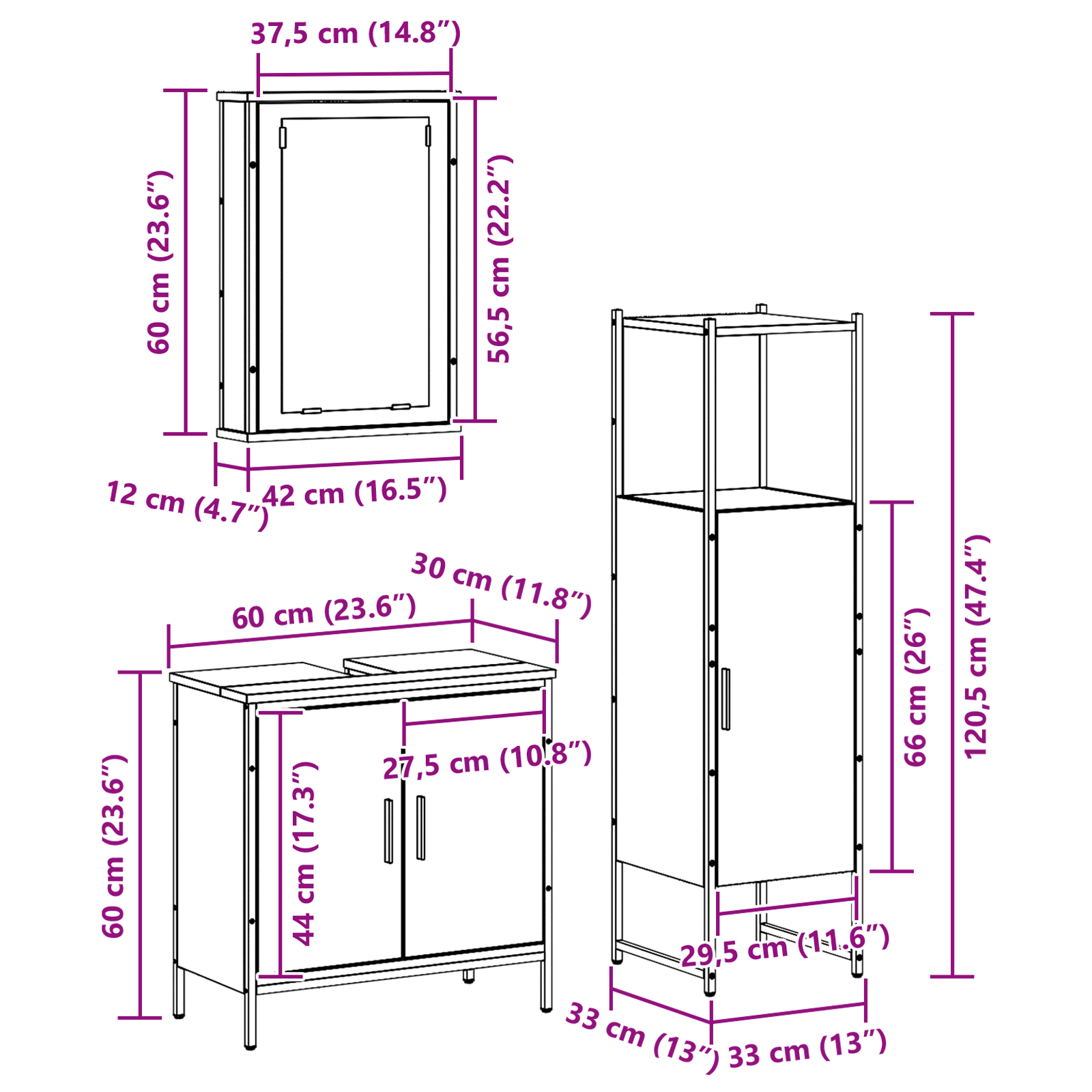 Tato moderní koupelnová nábytková sada spojuje styl a funkčnost. Perfektně se hodí do moderních domovů a nabízí chytrá úložná řešení pro různé věci. Díky čistým liniím a elegantnímu vzhledu zvyšuje jakoukoli moderní atmosféru. Dělá se z inženýrského dřeva a má skleněné detaily, takže je ideální pro organizaci koupelnových potřeb a dodává prostoru šmrnc.