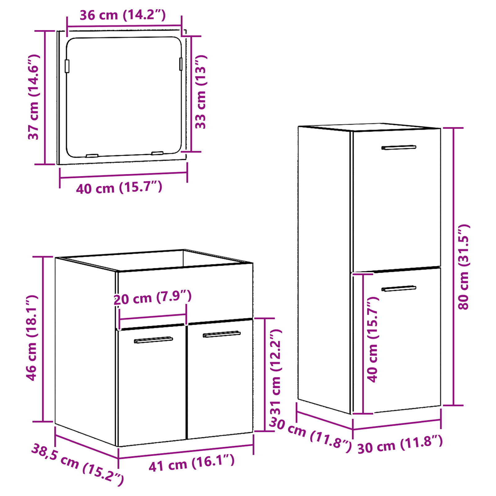 Tento nábytek do koupelny je stylový a funkční doplněk pro každou moderní koupelnu. Má čisté linie a minimální ozdoby, což spojuje formu s funkcí. Sestava obsahuje obdélníkové zrcadlo, skříň s bezfalcovými dveřmi a kovovými úchyty, a je vyrobená z inženýrského dřeva pro dlouhou životnost.