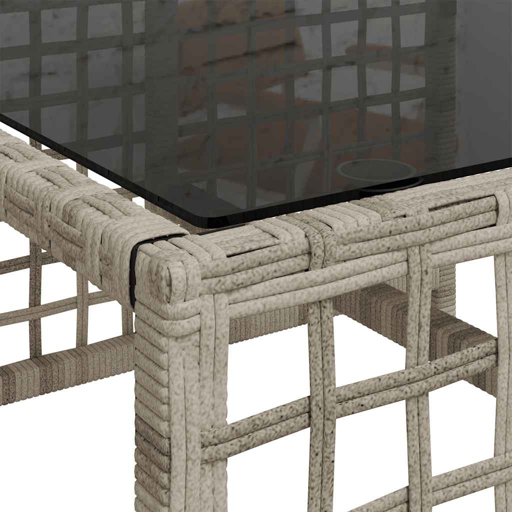 • Skleněná deska stolu: Deska venkovního stolu je zhotovena ze silného a odolného tvrzeného skla, takže ji snadno očistíte vlhkým hadříkem a zároveň do vašeho venkovního prostoru vnese nádech elegance.