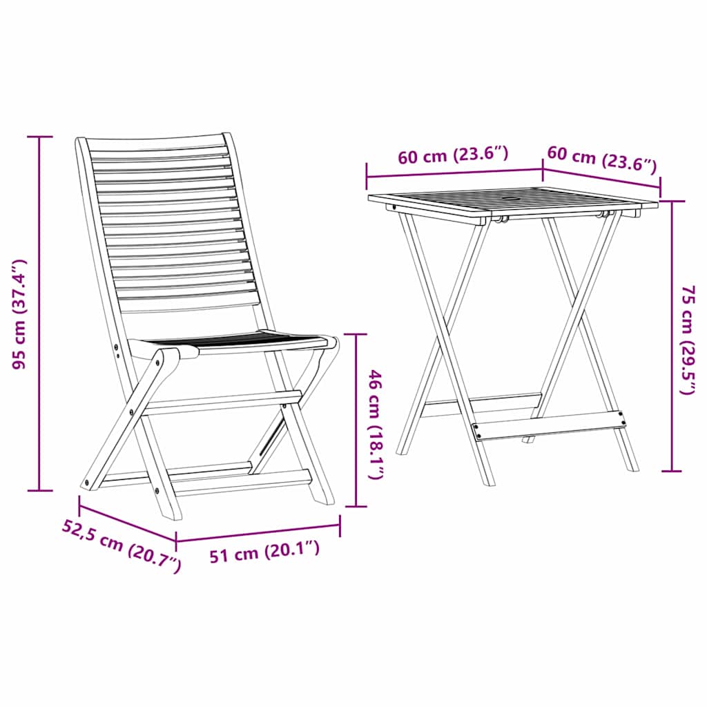 Tento rustikální skládací bistro set vnáší do každého venkovního prostoru šmrnc elegance. Pečlivě vyrobený z masivního akáciového dřeva, set je nejen hezký, ale taky praktický. Rustikální styl spojuje krásu s užitečností, takže je skvělej pro zahrady a terasy. S přirozeným povrchem vás zve k odpočinku a užívání si ve svých oblíbených venkovních místech.