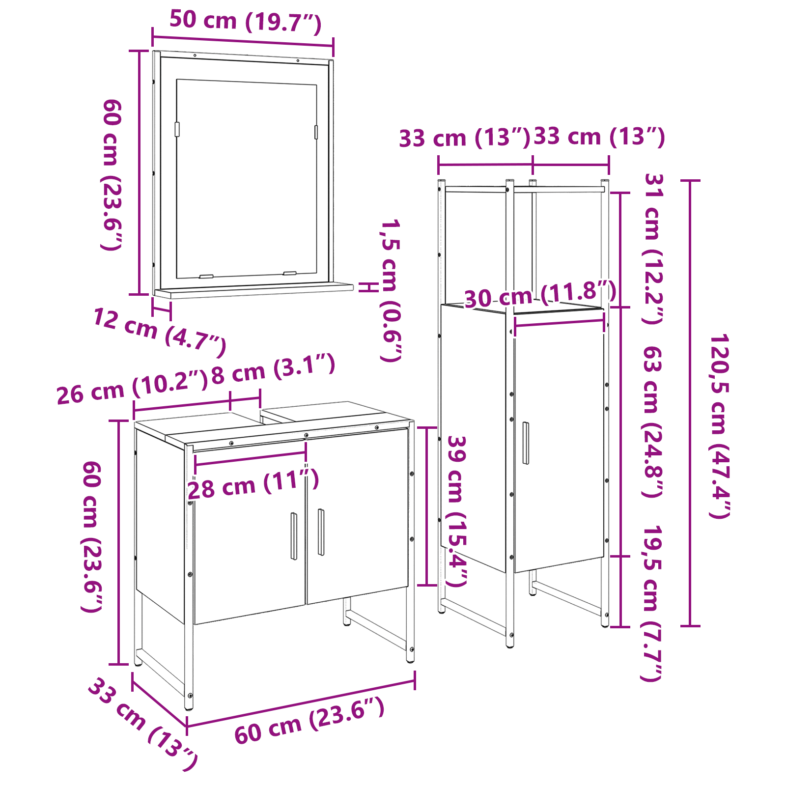 Tato moderní koupelnová sada dodá každé koupelně elegantní vzhled a funkční design. Je vyrobená z inženýrského dřeva, což zajišťuje čistý a uspořádaný vzhled. Sada obsahuje všechny důležité komponenty, jako skříň s zapuštěnými dveřmi a tyčovými úchyty, které dohromady vytvářejí minimalistickou atmosféru. Je ideální pro jednotlivce nebo rodiny, které chtějí kombinovat styl s praktičností v úložném prostoru koupelny.