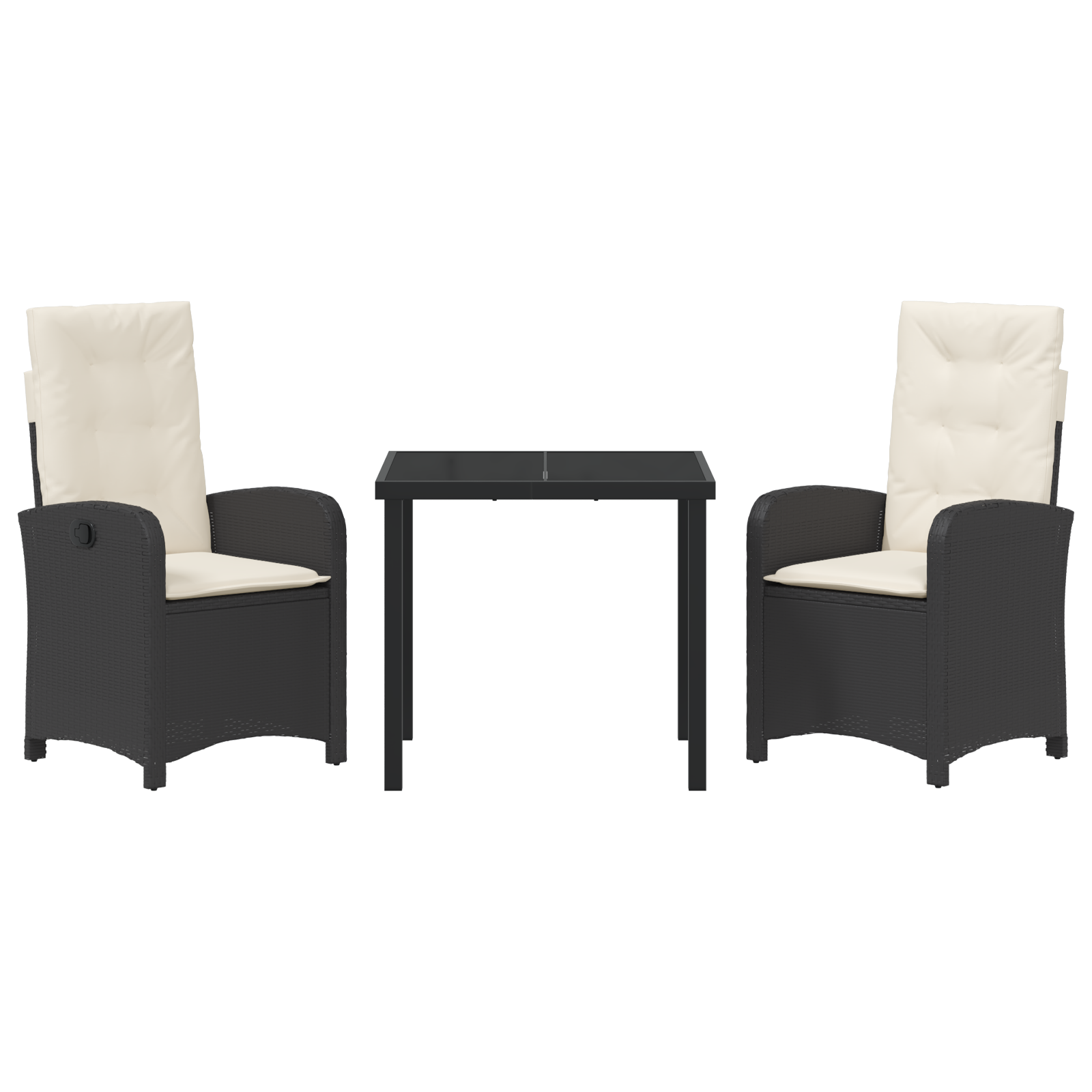 Zahradní jídelní souprava s polštářem 3 pcs Černá polyratan