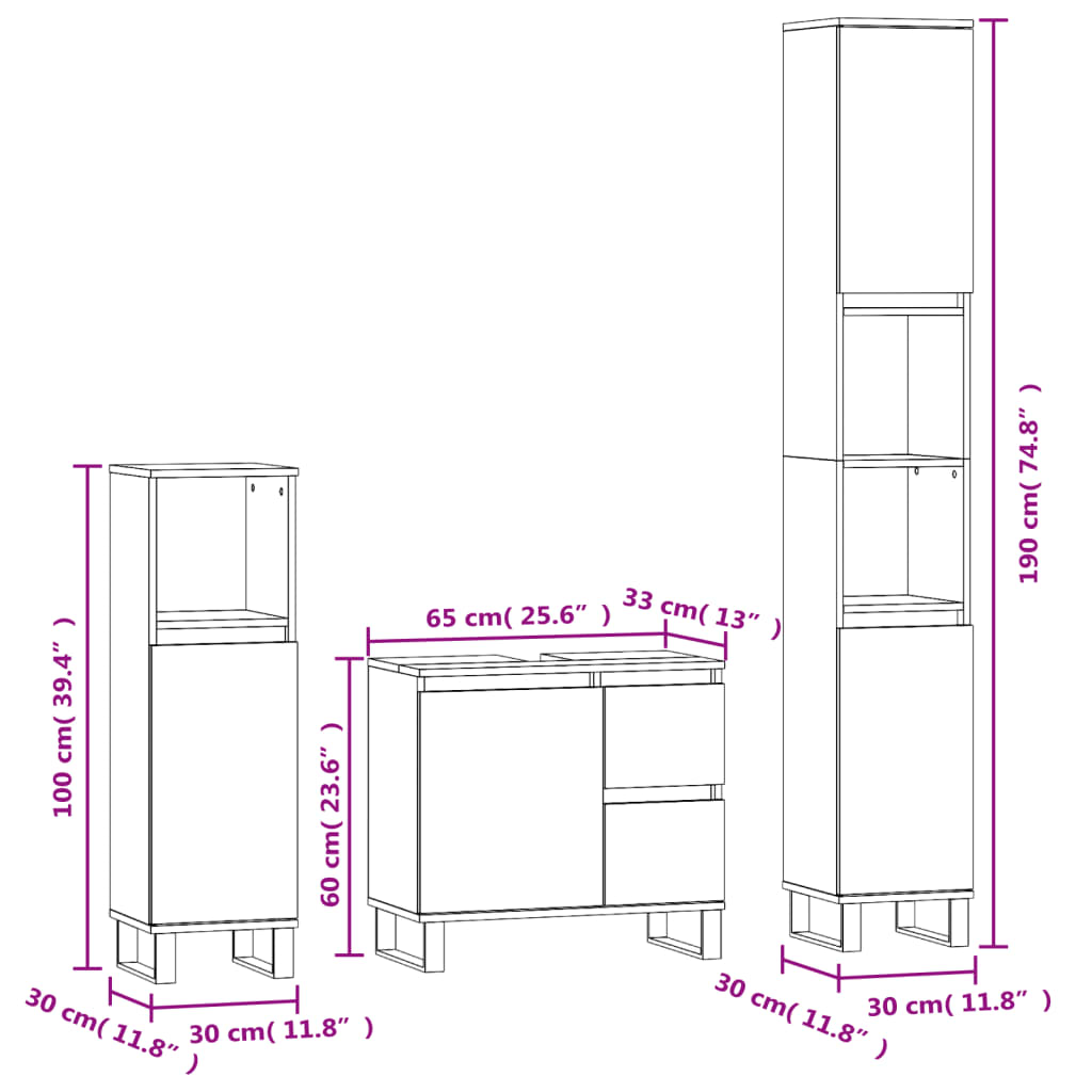 3dílný set koupelnového nábytku bílý kompozitní dřevo