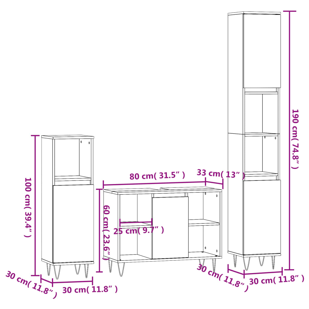 Rozměry umyvadlové skříňky: 80 x 33 x 60 cm (D x Š x V)