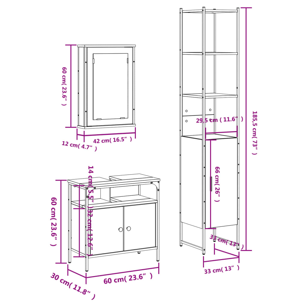 3dílný set koupelnového nábytku šedý sonoma kompozitní dřevo