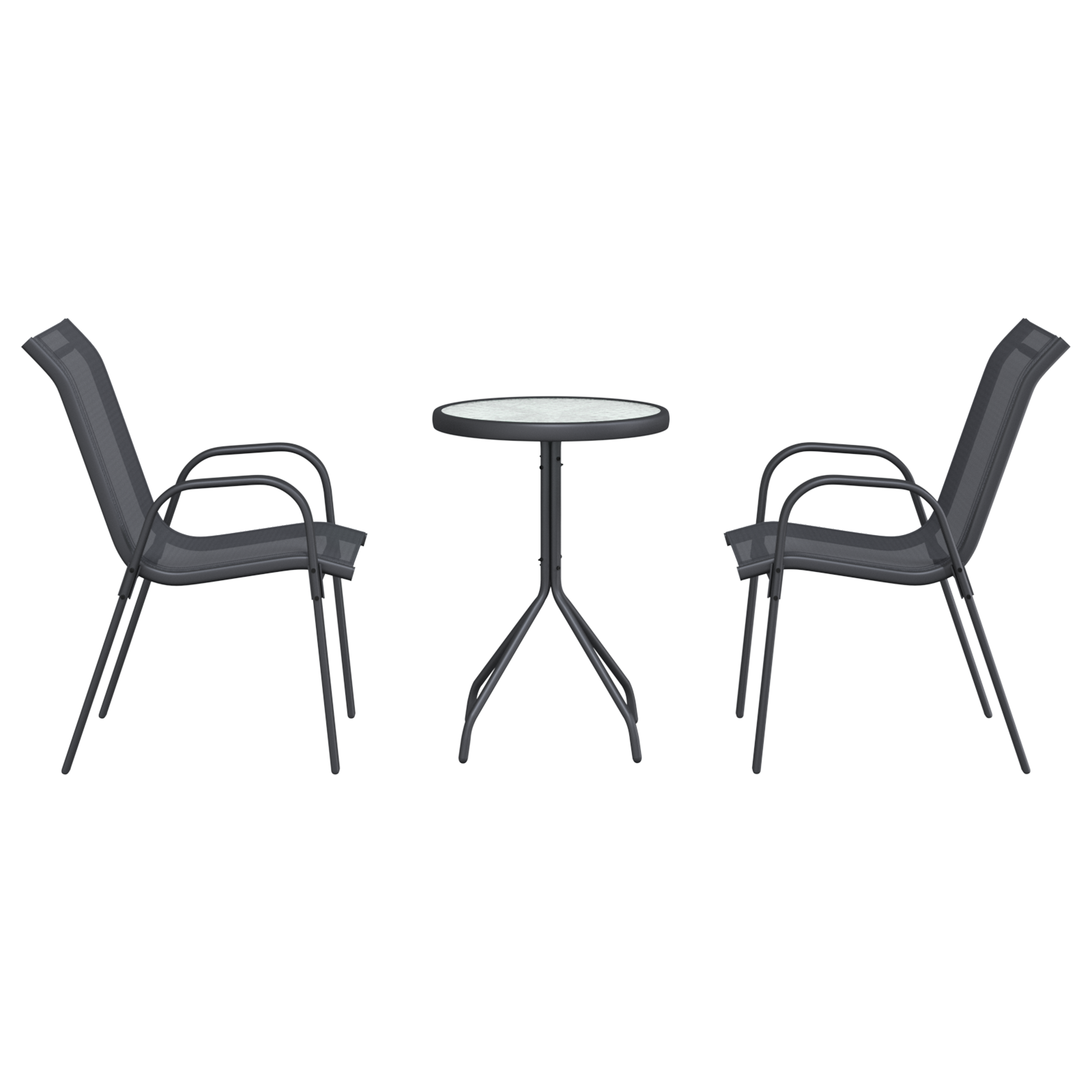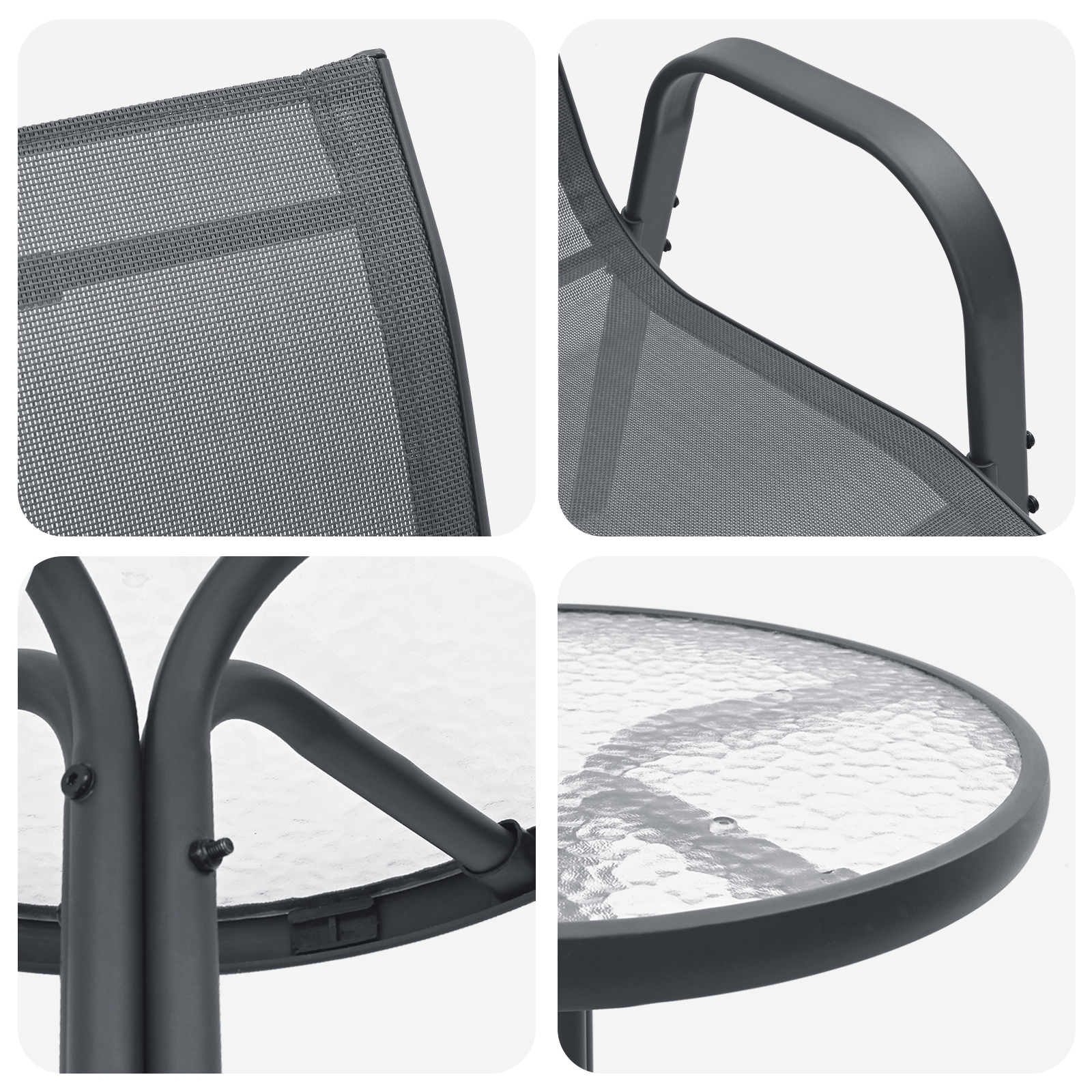 Tento zahradní bistro set je navržen tak, aby zlepšil tvůj venkovní prostor moderním spojením stylu a funkčnosti. Díky čistému a minimalistickému vzhledu je ideální na ranní kávu, víkendové brunch nebo večerní sezení ve tvé zahradě či na terase. Ocelová konstrukce přidává elegantní a pevný vzhled, který zaručuje, že tvůj zahradní prostor bude vypadat skvěle.