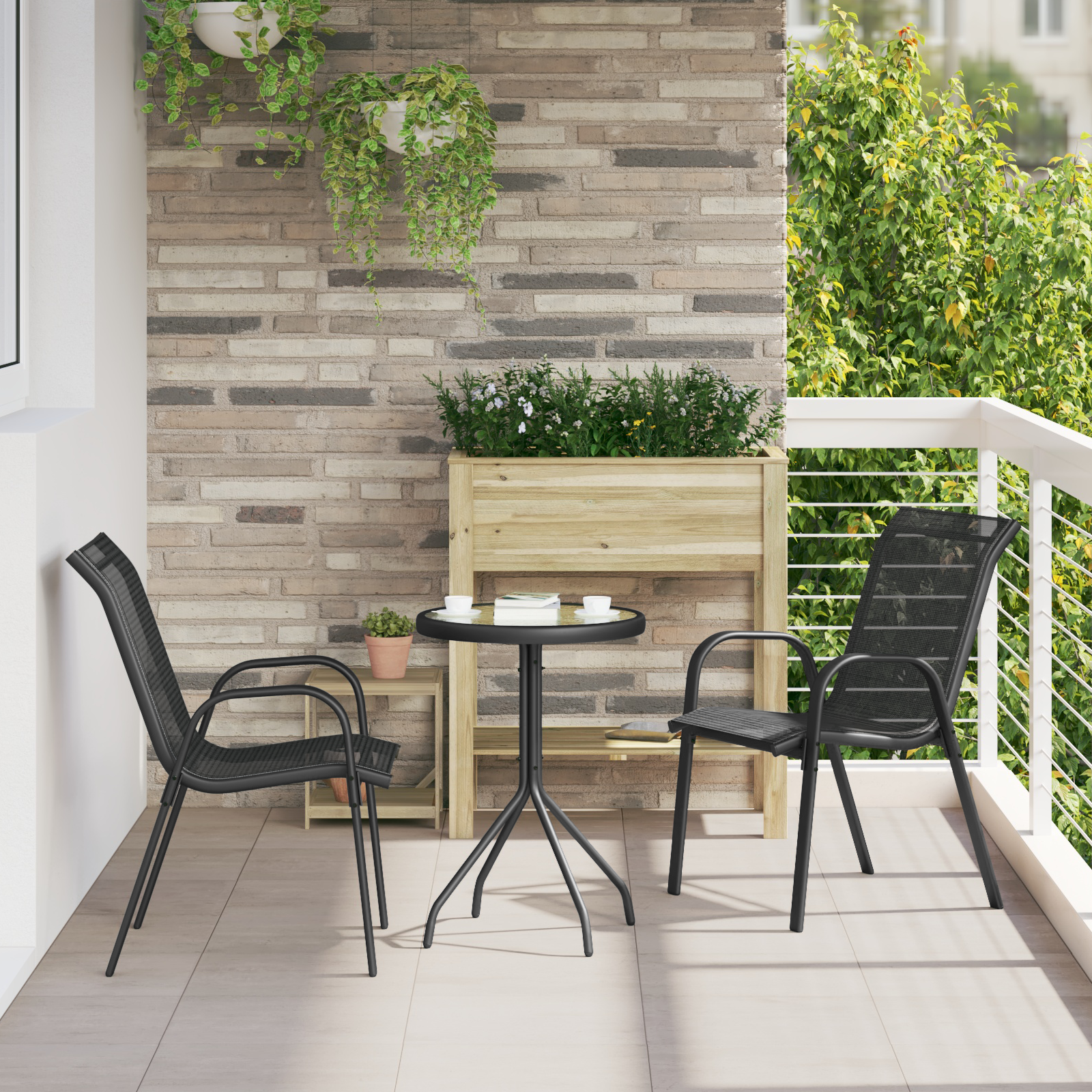 Tento zahradní bistro set je navržen tak, aby zlepšil tvůj venkovní prostor moderním spojením stylu a funkčnosti. Díky čistému a minimalistickému vzhledu je ideální na ranní kávu, víkendové brunch nebo večerní sezení ve tvé zahradě či na terase. Ocelová konstrukce přidává elegantní a pevný vzhled, který zaručuje, že tvůj zahradní prostor bude vypadat skvěle.