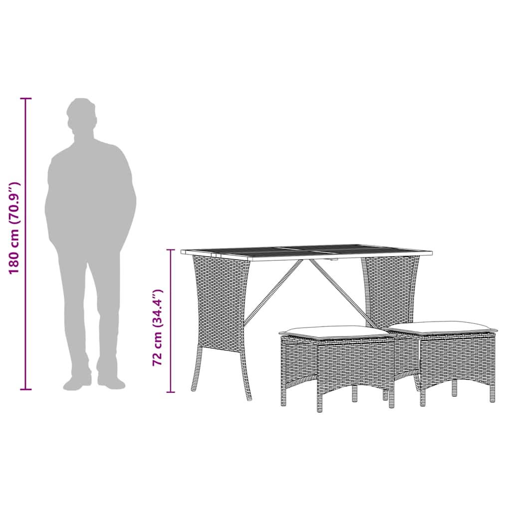 3dílný zahradní jídelní set s poduškami šedý polyratan