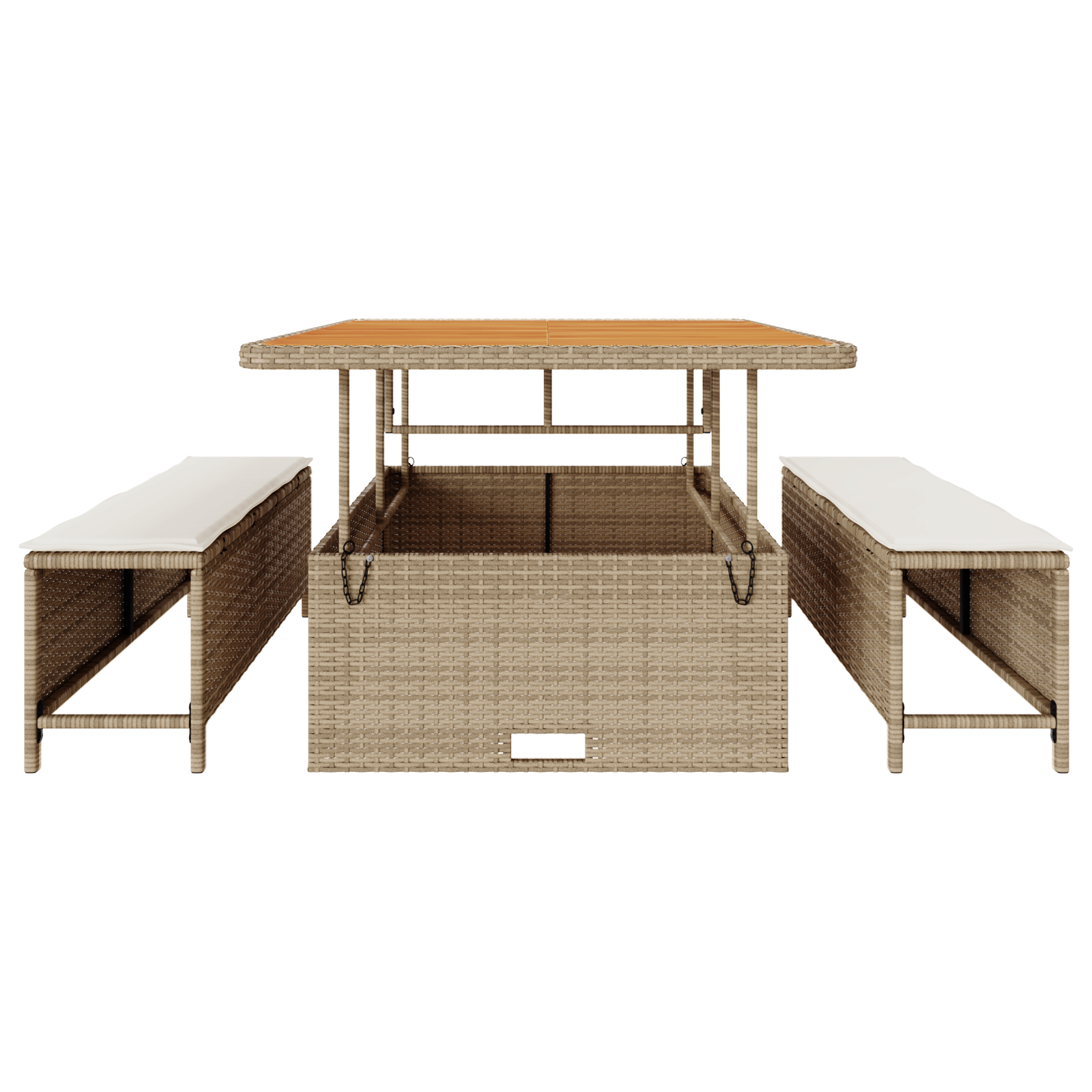 Tento moderní zahradní jídelní set spojuje eleganci a praktické využití, skvěle se hodí pro milovníky jídla venku. Má čisté linie a minimum dekorací, což přináší do jakéhokoli venkovního prostoru, jako jsou terasy nebo zahrady, moderní nádech. Kombinace materiálů mu dodává tu správnou šťávu, takže je vizuálně atraktivní a zároveň praktický - ideální pro sešlosti, oslavy nebo klidné večery v přírodě.