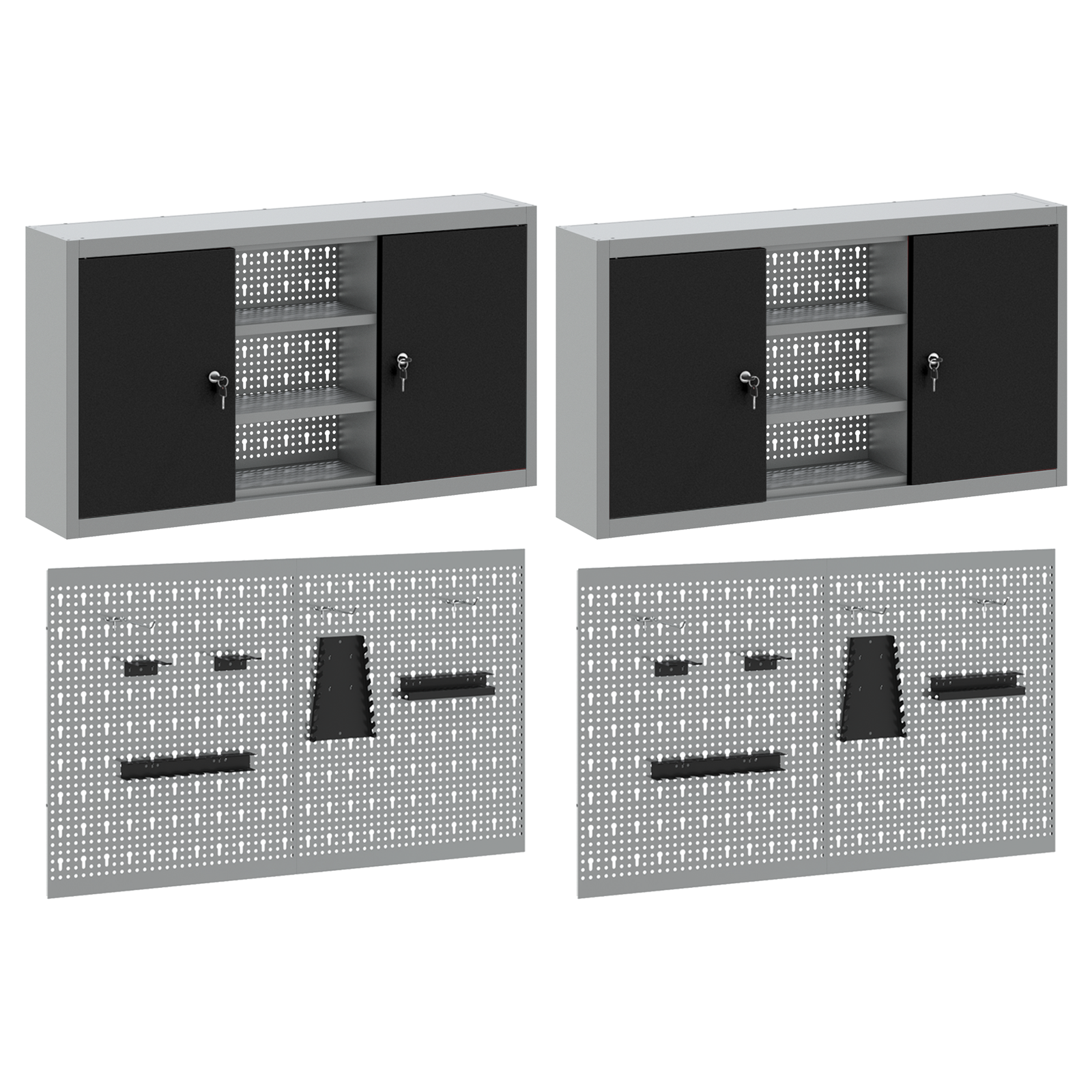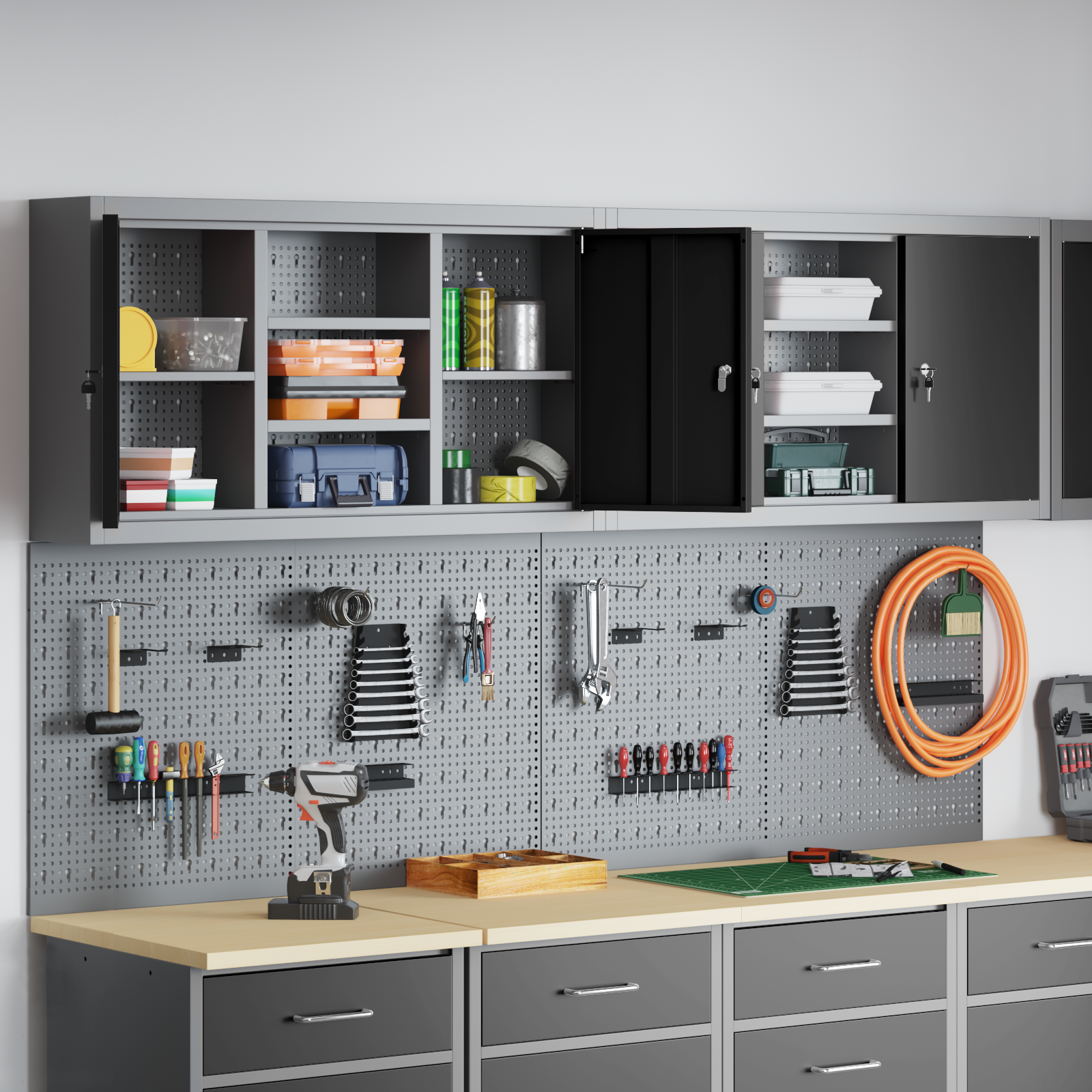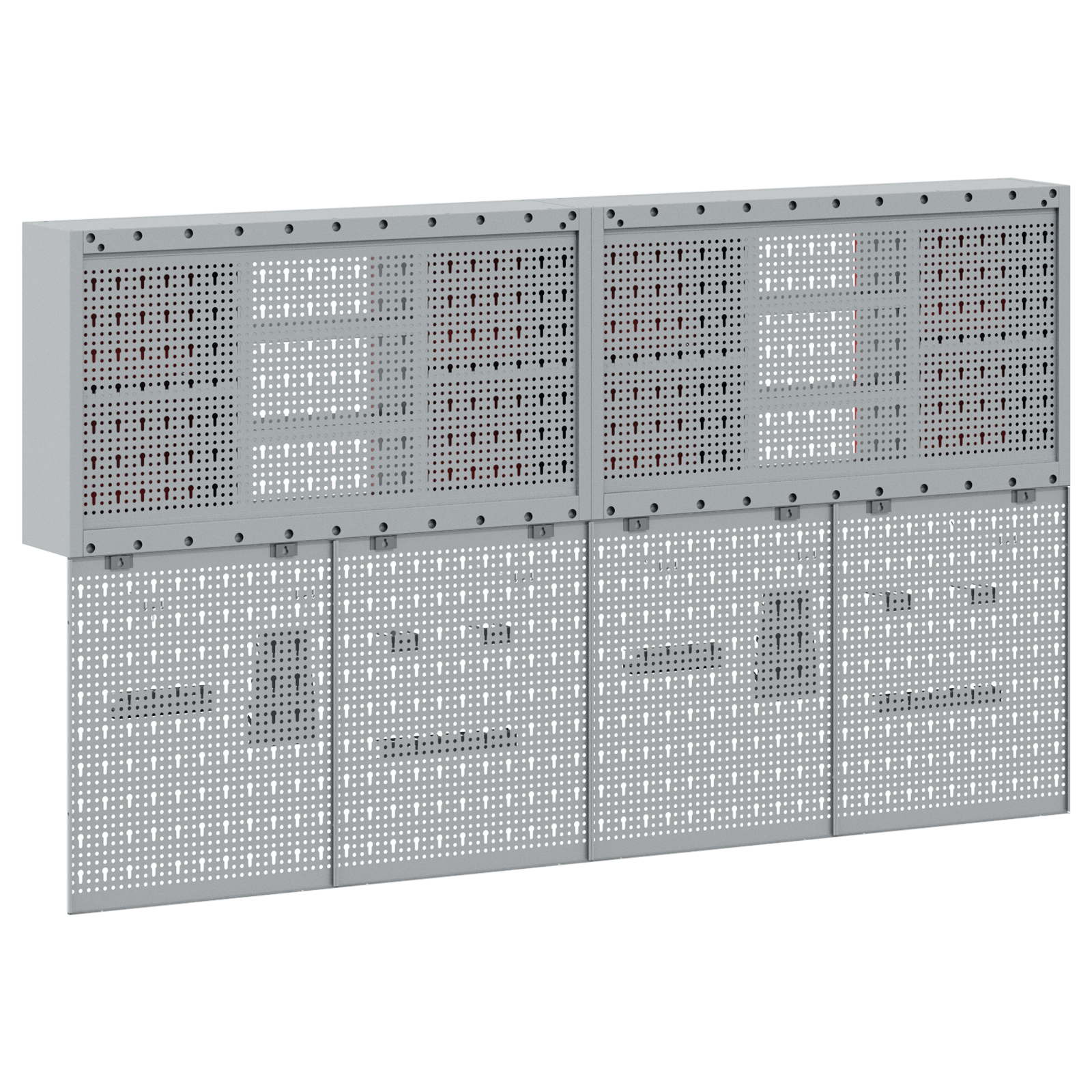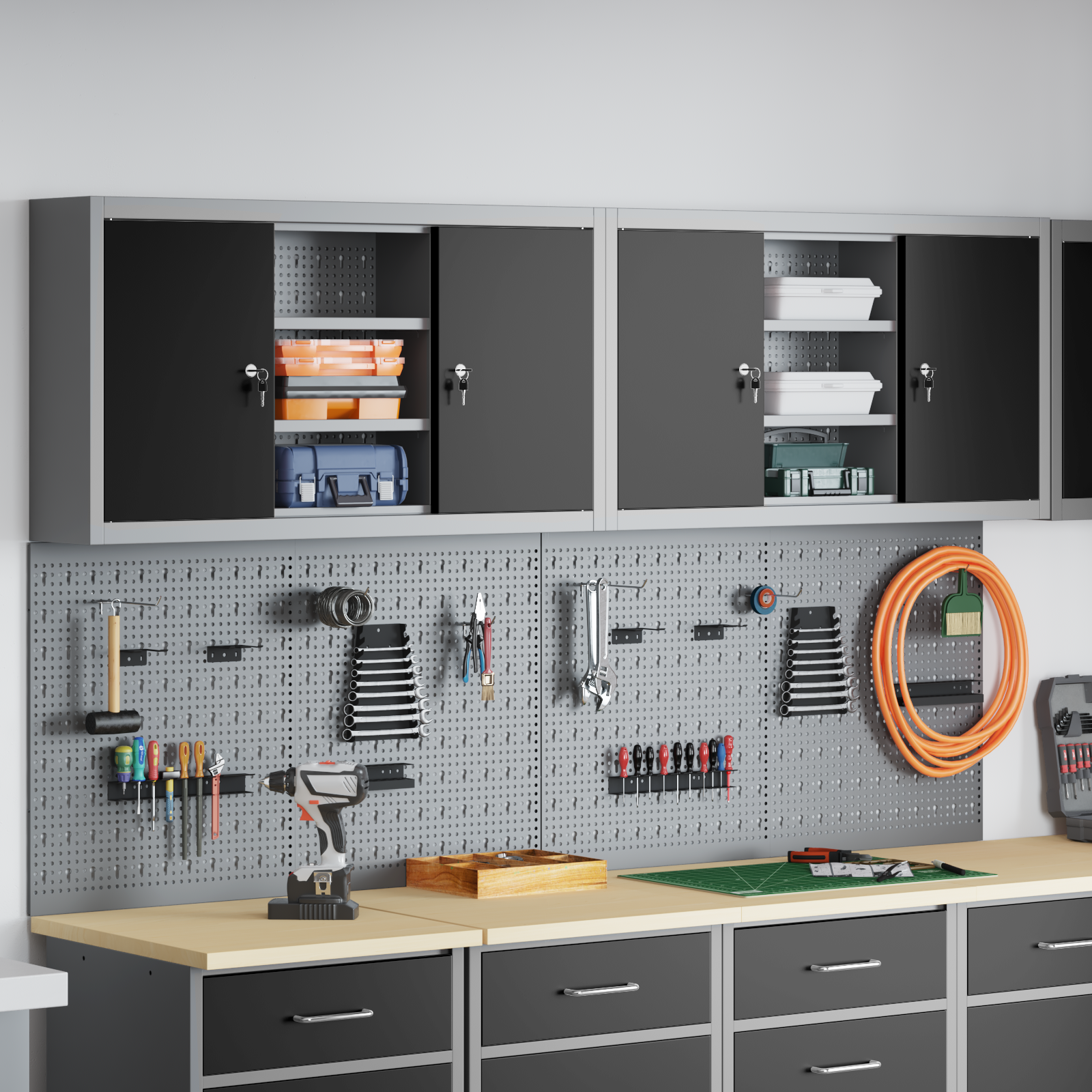 Tahle všestranná nástěnná skříňka na nářadí a souprava desek je nutnost, pokud chcete mít ve své dílně nebo garáži pořádek. S elegantním industriálním designem přináší městský nádech díky práškově lakované ocelové konstrukci a hladkému šedému povrchu. Určená do vnitřních prostor, skříňka skvěle uskladní nářadí, které bude přehledně a snadno dostupné. Integrovaná deska také zvyšuje funkčnost, protože umožňuje přizpůsobit si uspořádání nářadí podle vlastních potřeb.