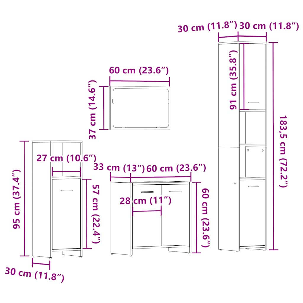 1 x koupelnová skříňka (malá): 30 x 30 x 95 cm (Š x H x V)