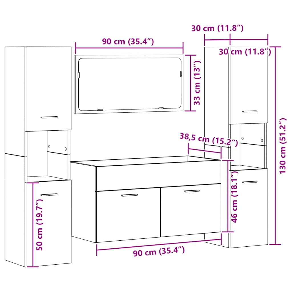 1 x skříňka pod umyvadlo: 90 x 38,5 x 46 cm (Š x H x V)