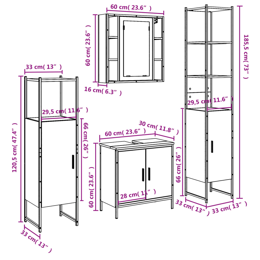 Tato atraktivní sada koupelnových skříněk s velkým úložným prostorem se vyznačuje stylovým i praktickým designem.
