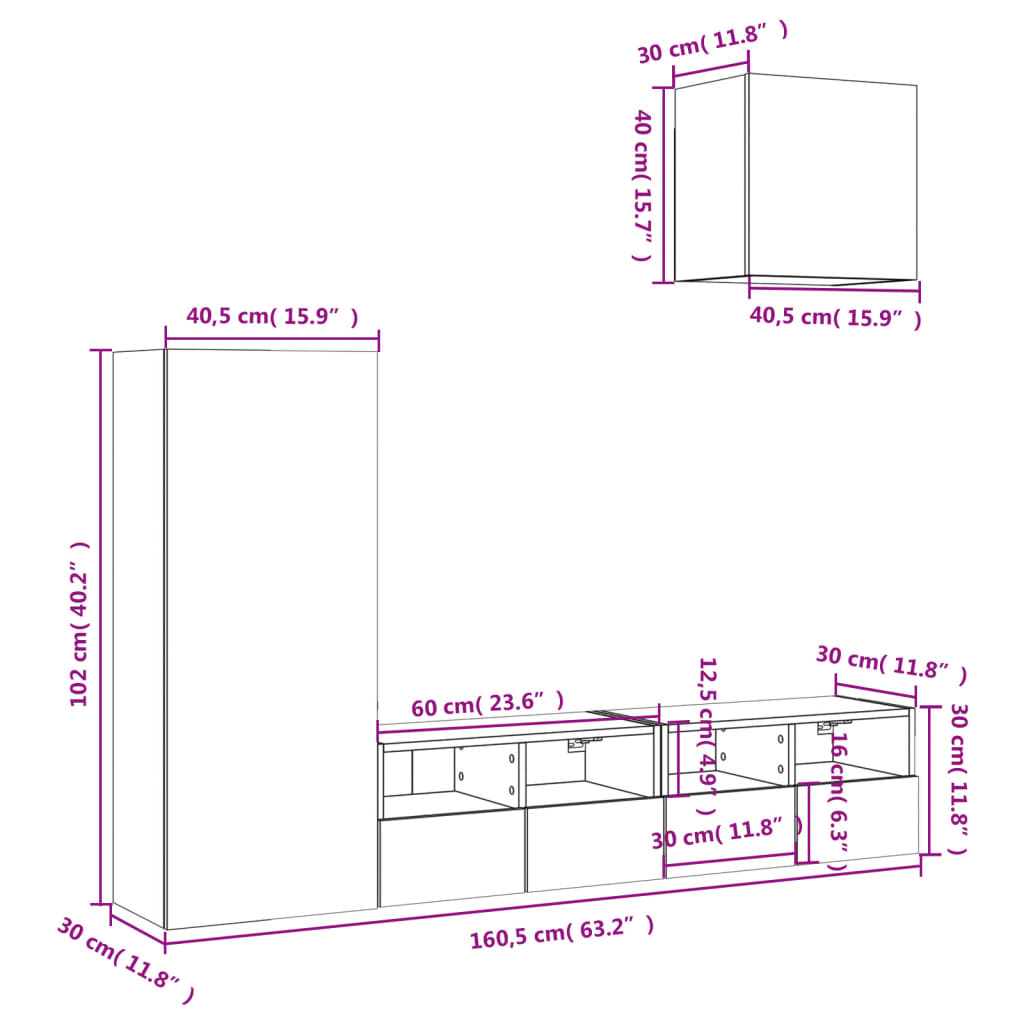 2x nástěnná skříňka: 60 x 30 x 30 cm (Š x H x V)