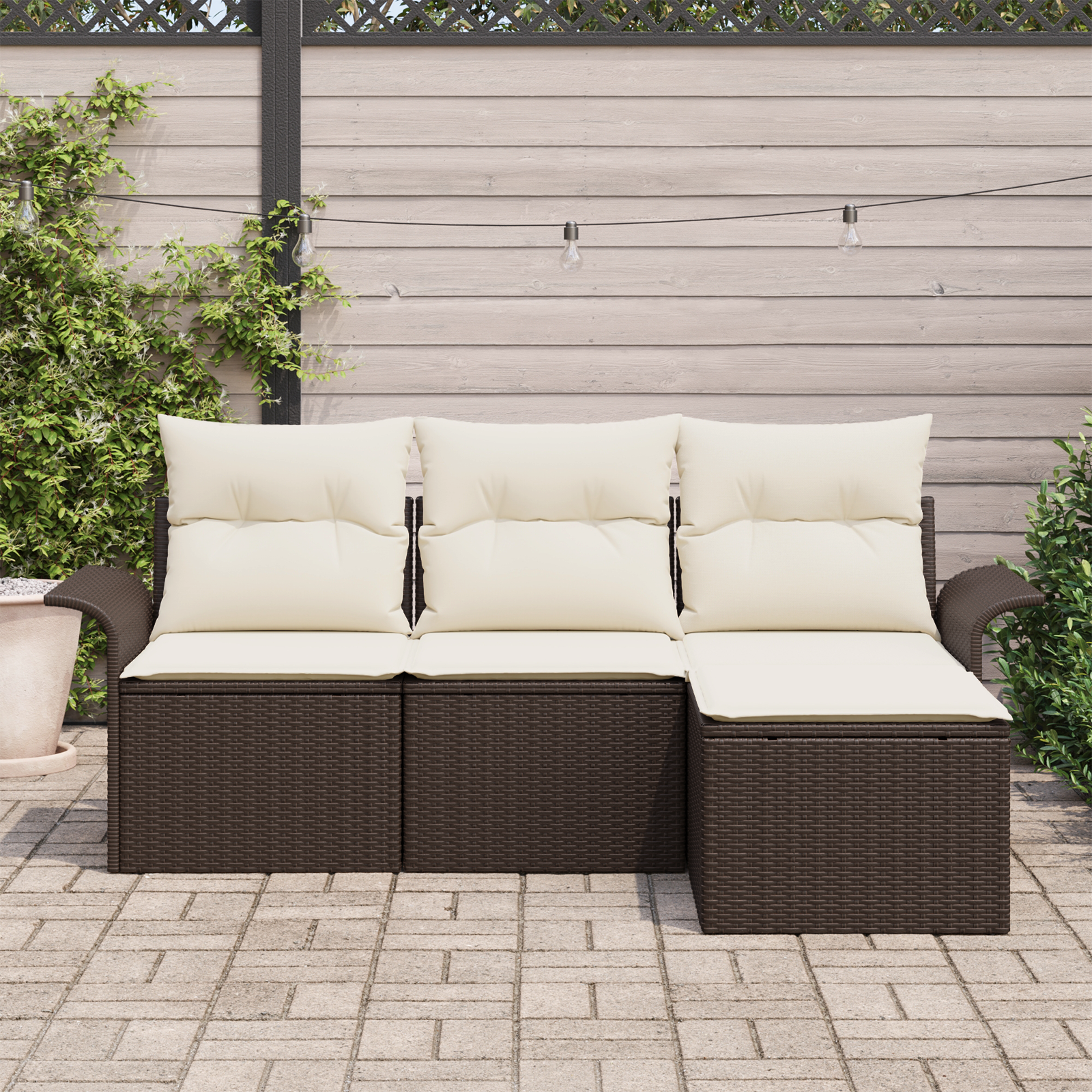 Set pohovek s polštářem 4 pcs Hnědá a krémová polyratan