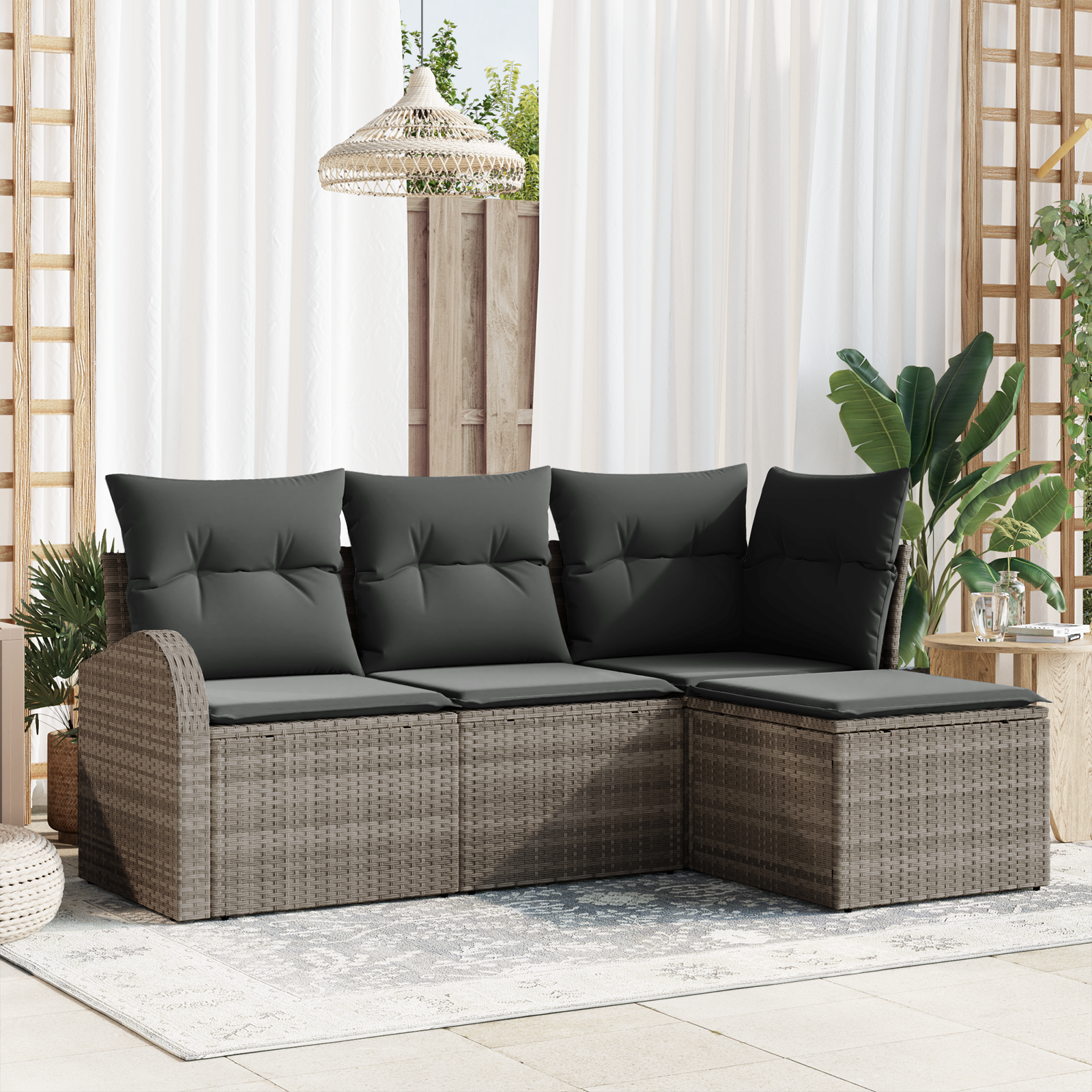 Zahradní pohovka přináší moderní a elegantní řešení pro venkovní pohodlí, s hladkým a sofistikovaným vzhledem. Je ideální na jarní a letní večery na terase. Navržená pro styl i funkčnost, tahle souprava nabízí pohodlné sezení venku, přizpůsobitelná různým uspořádáním pro společenské akce nebo jen tak na relaxaci.