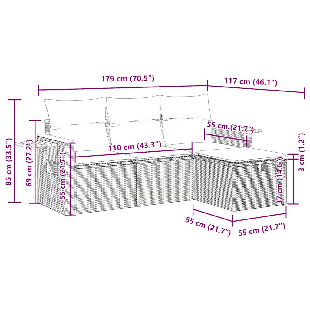4dílná zahradní sedací souprava s poduškami béžová polyratan