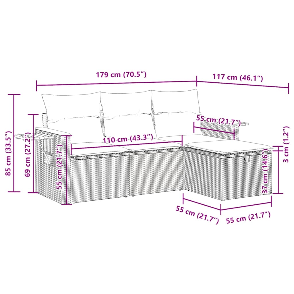 4dílná zahradní sedací souprava s poduškami černá polyratan