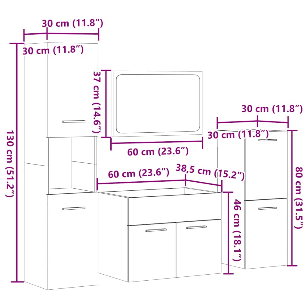 4dílný set koupelnového nábytku betonově šedý kompozitní dřevo