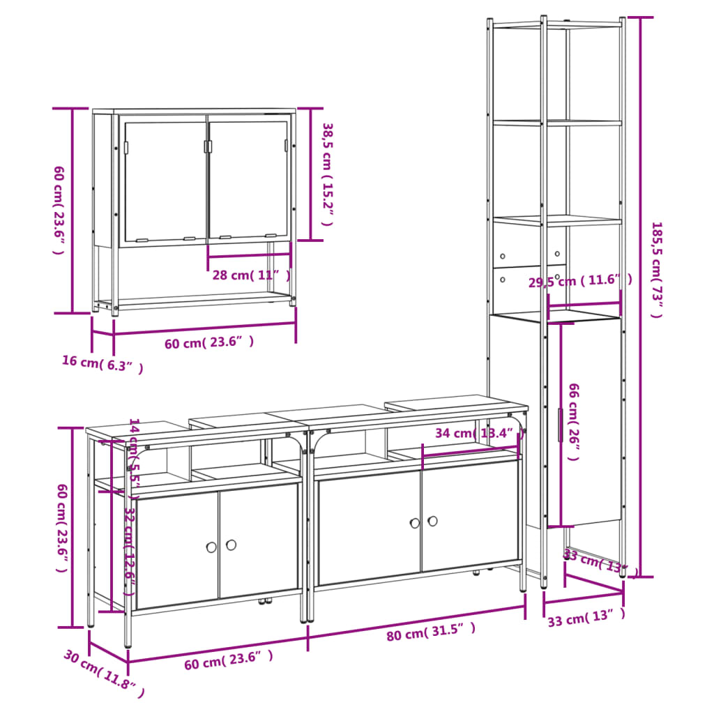 4dílný set koupelnového nábytku šedý sonoma kompozitní dřevo