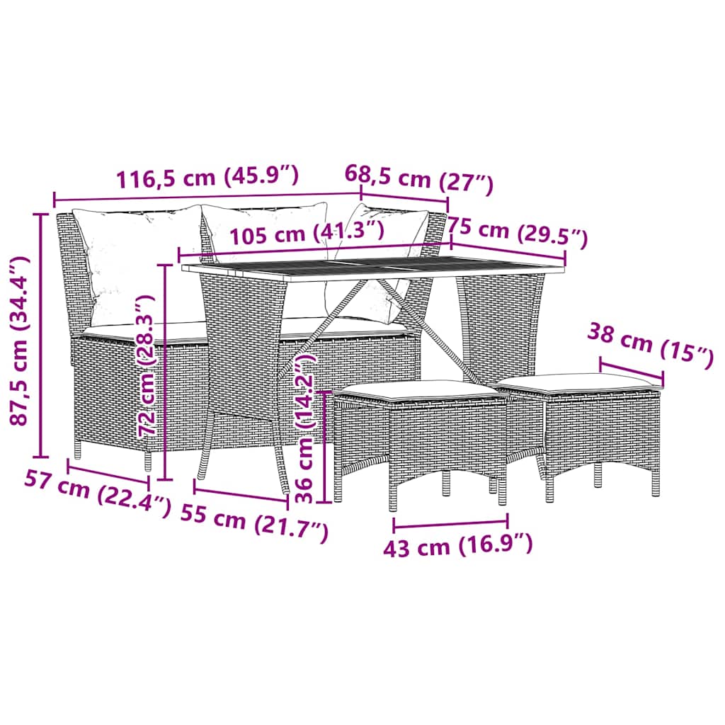 4dílný zahradní jídelní set s poduškami béžový polyratan