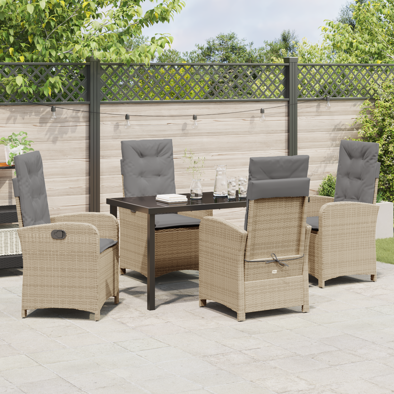 • Údržba: Chraňte svůj zahradní jídelní set zakrytím vhodným krytem, když ho nepoužíváte. Tento krok je důležitý, aby nedošlo k poškození během špatného počasí, což prodlužuje životnost a udržuje hezký vzhled vašeho nábytku.